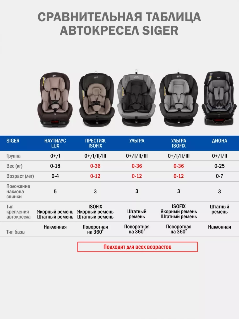 регулировка наклона спинки; регулировка высоты внутренних ремней; съемный чехол