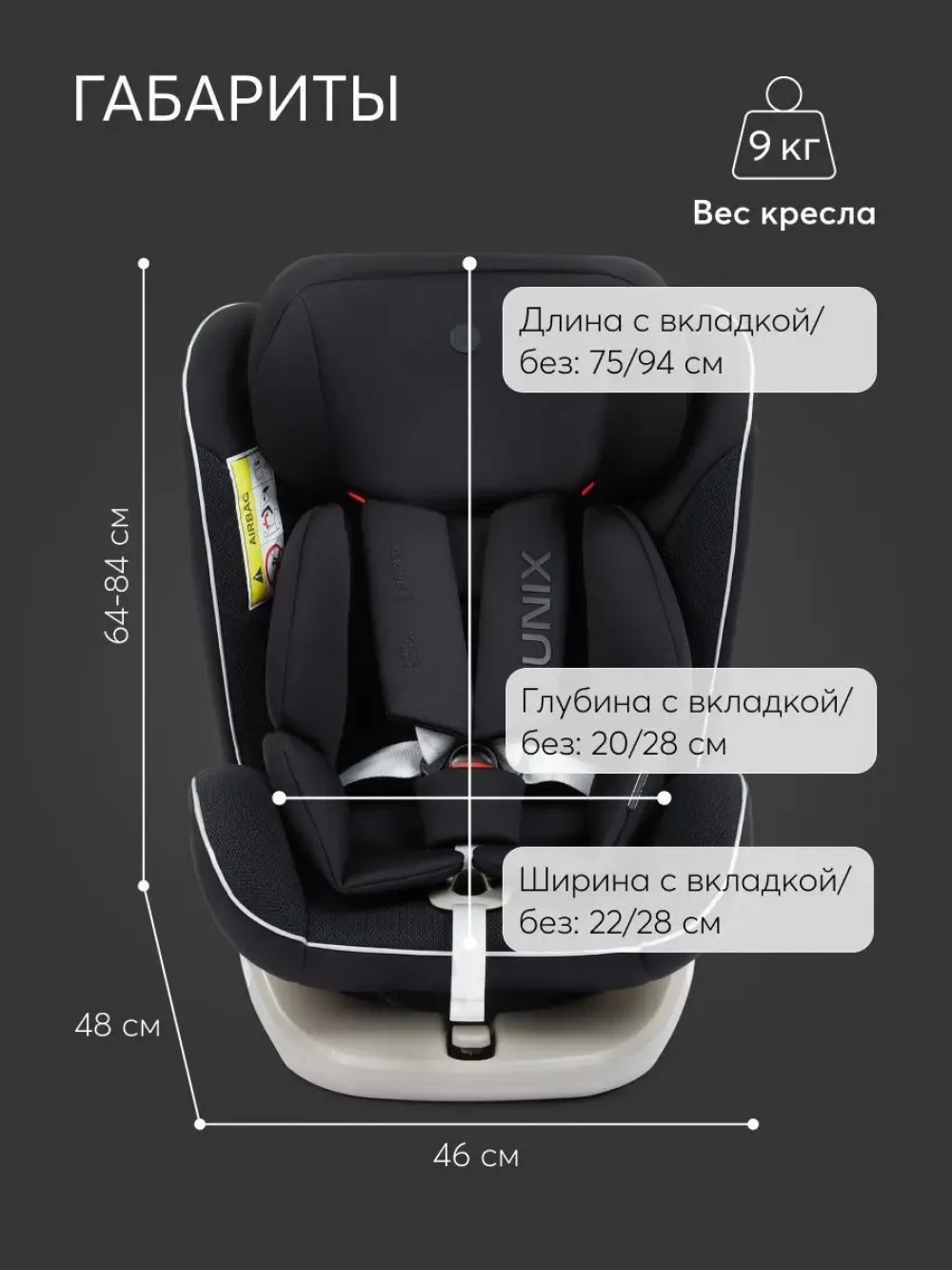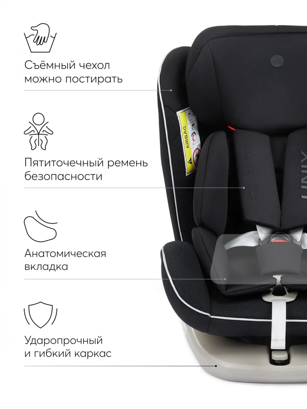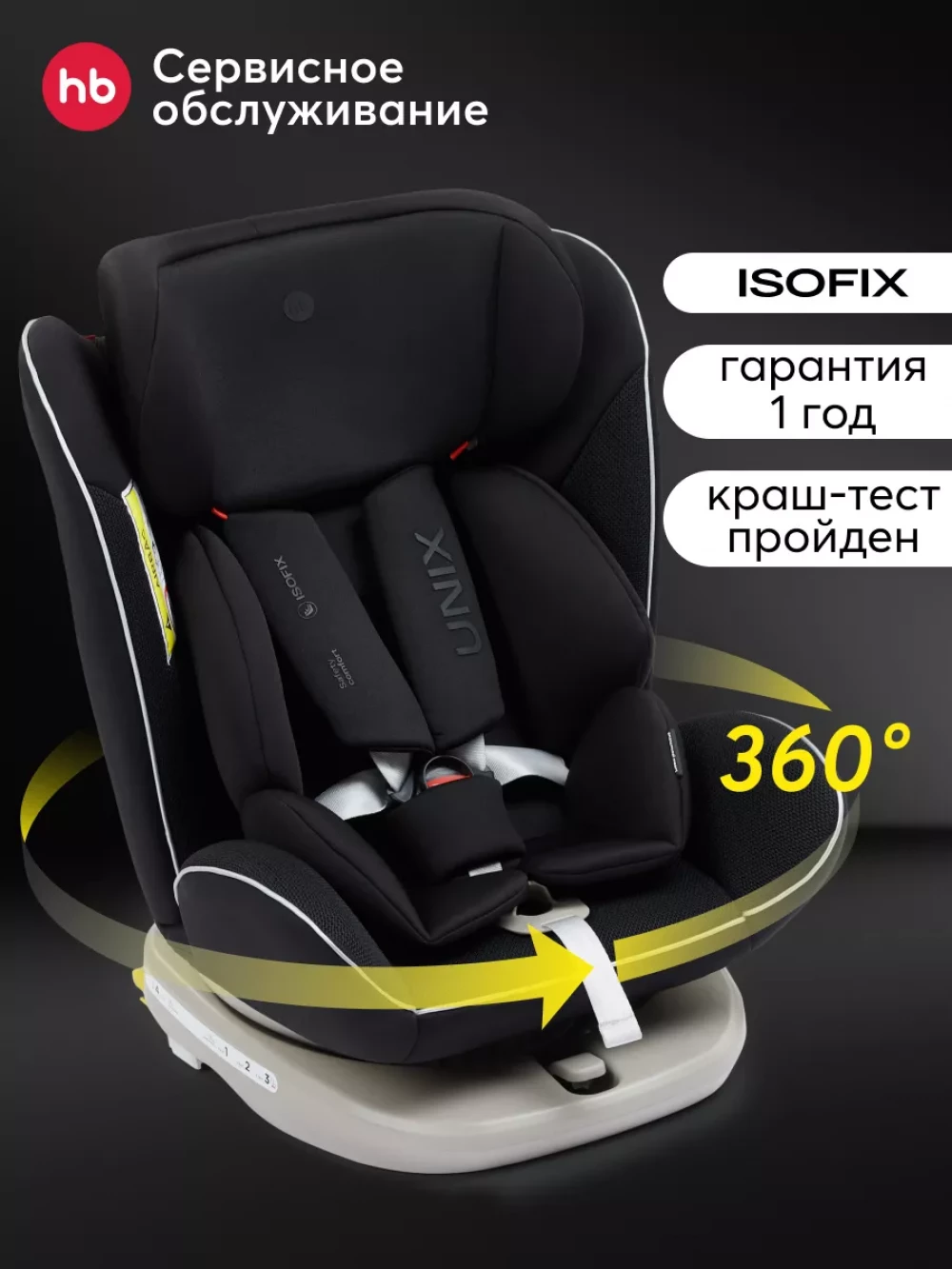 Автокресло Happy Baby Unix 0/1/2/3 (0-36 кг) True Black