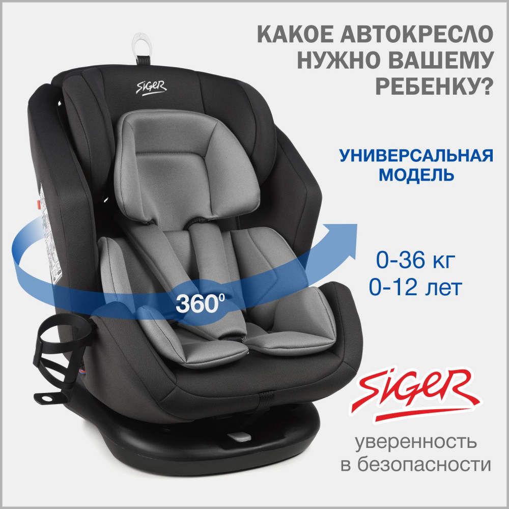 Автокресло Siger Ультра 0/1/2/3 (0-36кг) антрацитово-серый