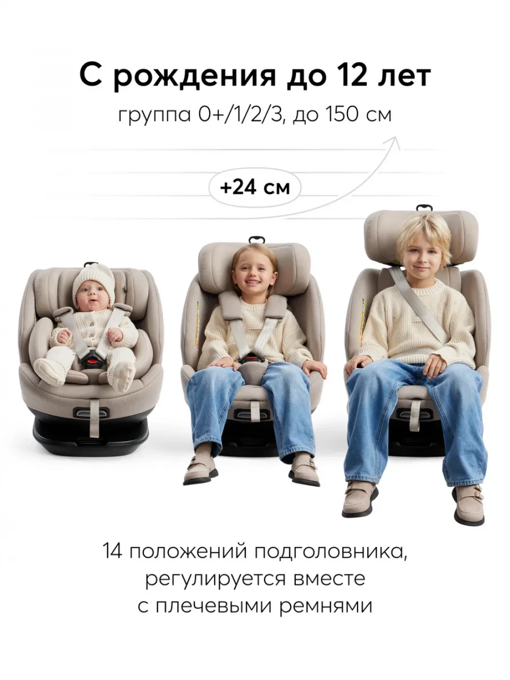 Автокресло Happy Baby Reex 0/1/2/3 (0-36кг) grey beige