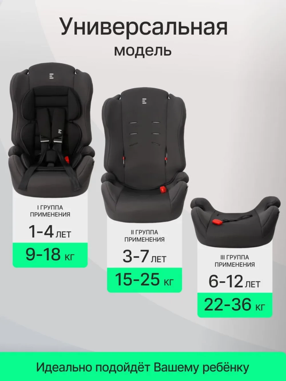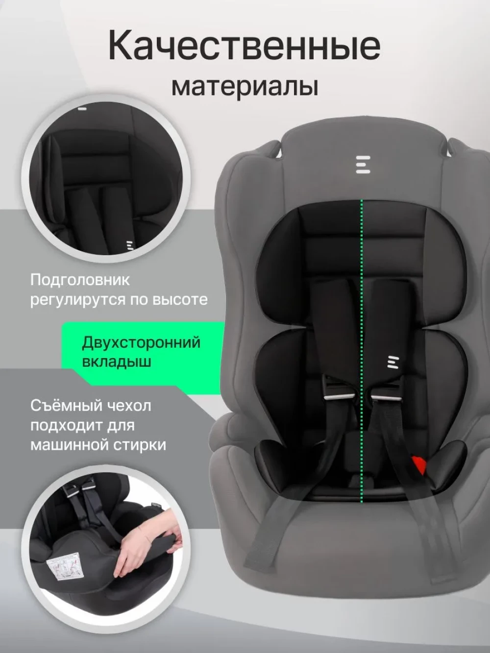 трансформируется в бустер; регулировка высоты внутренних ремней; регулировка натяжения ремней