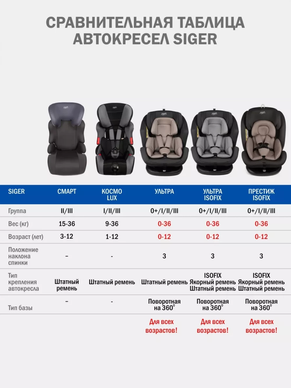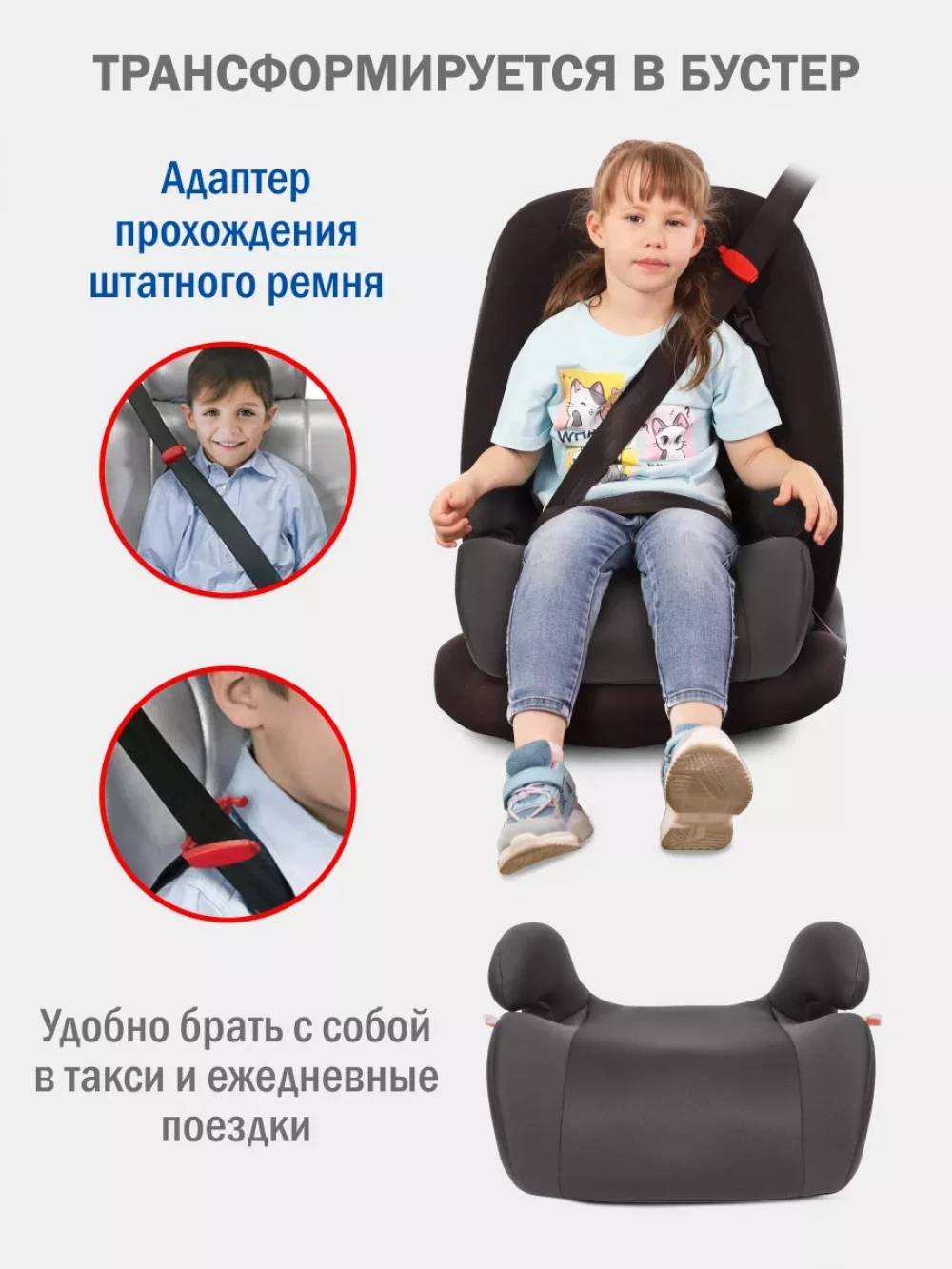 регулировка высоты подголовника; съемный чехол; трансформируется в бустер
