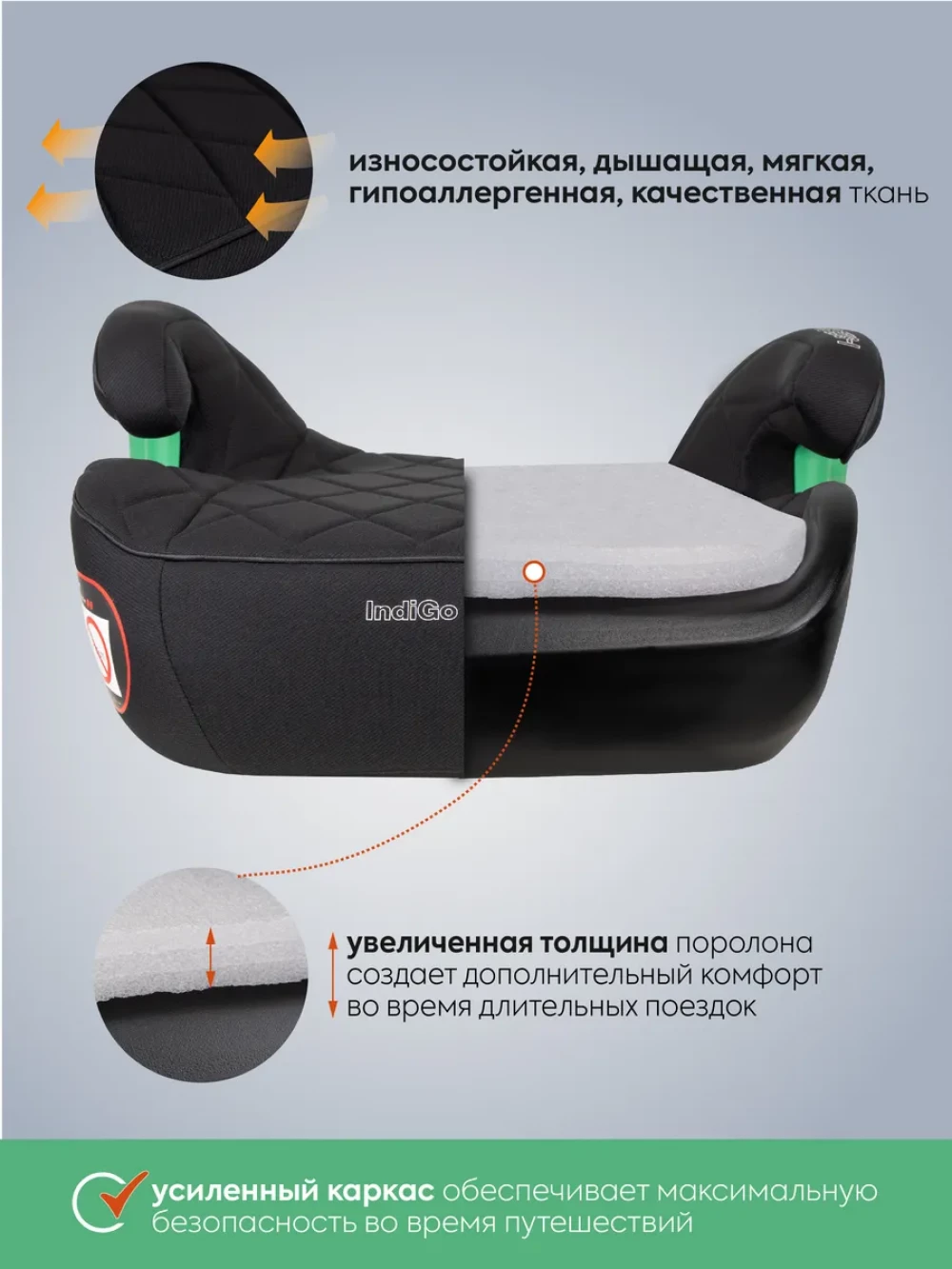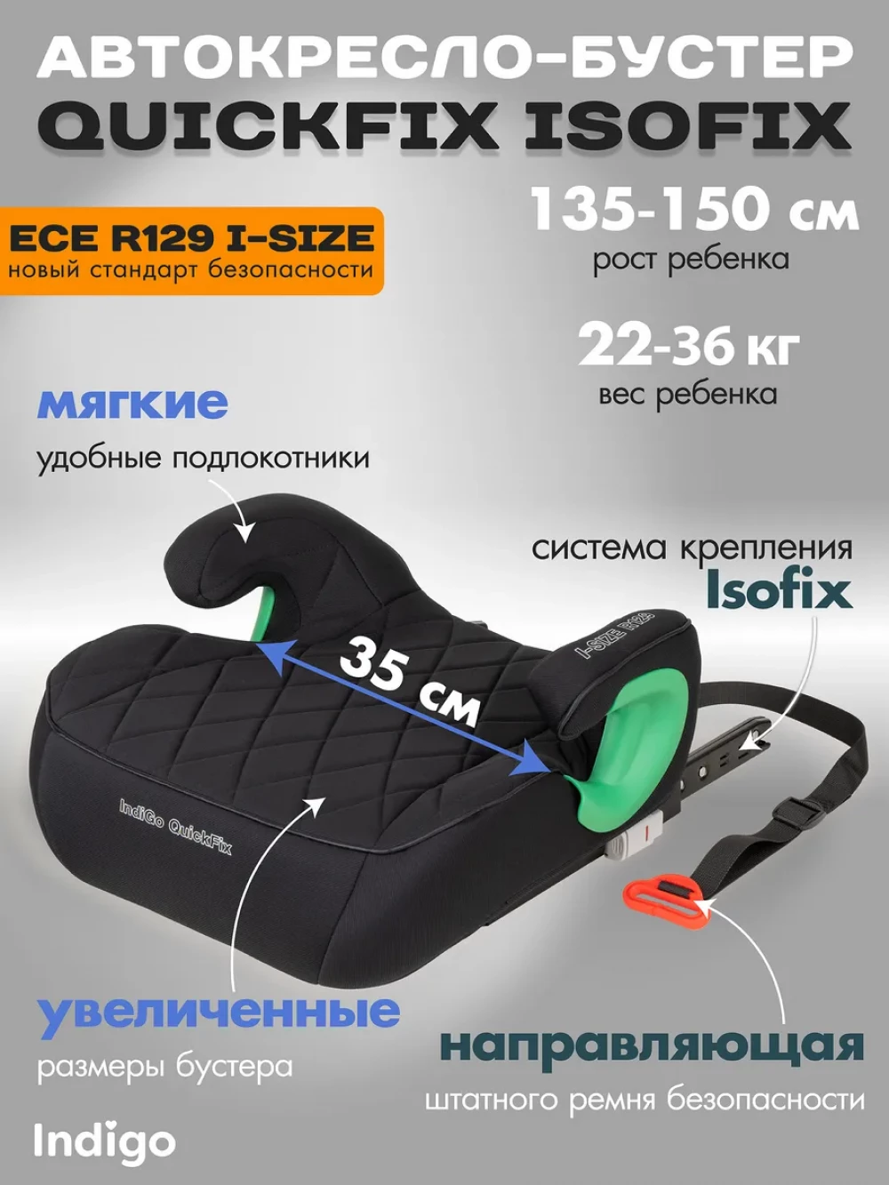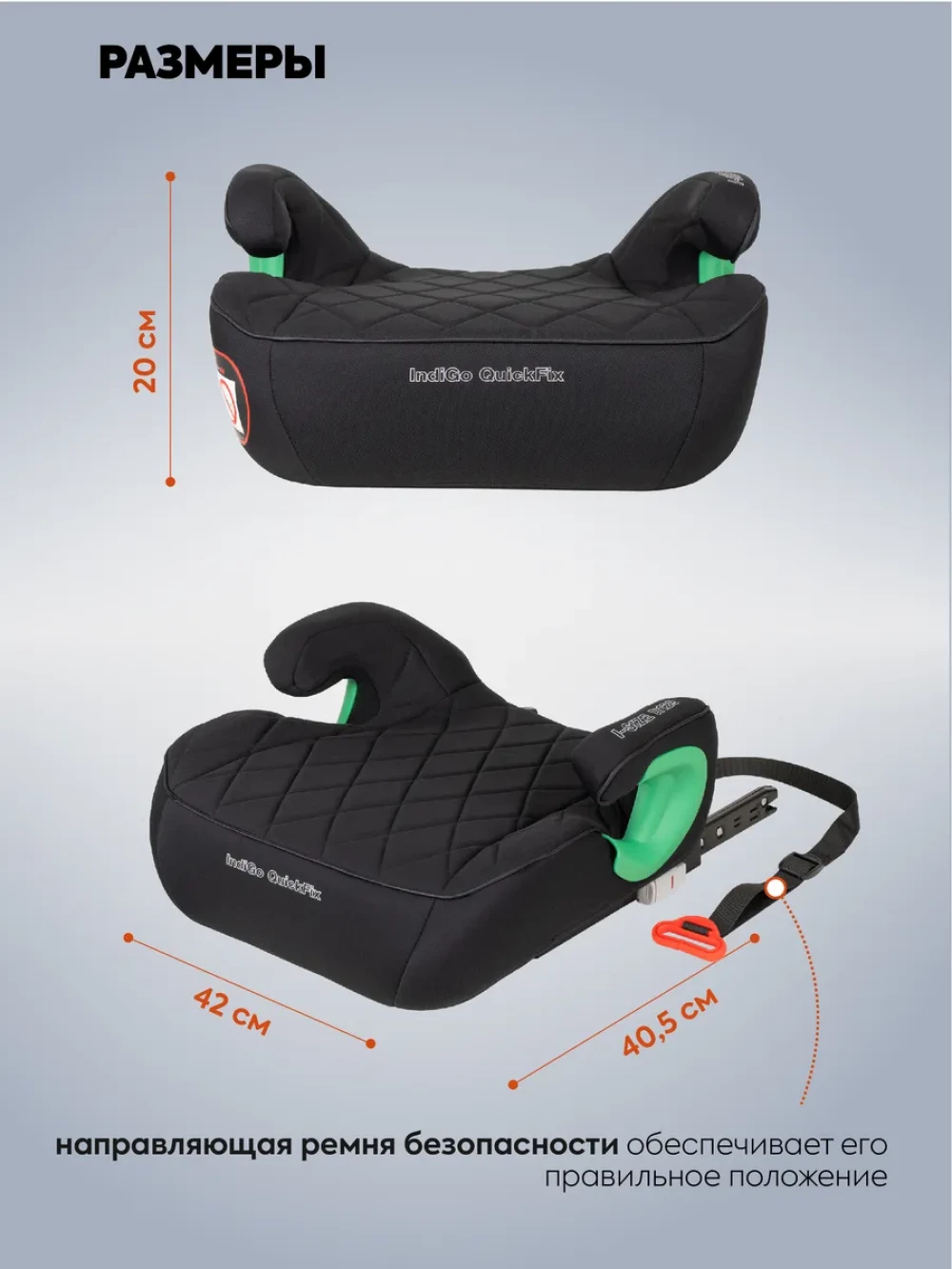 бустер; ремень для фиксации с пряжкой; направляющие isofix; инструкция