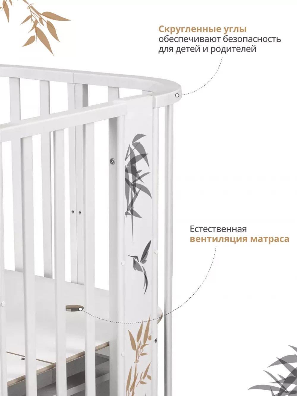 Кроватка-трансформер Indigo София NEW 6в1 с маятником 125*75 (овал) 75*75 (круг) белый-натуральный