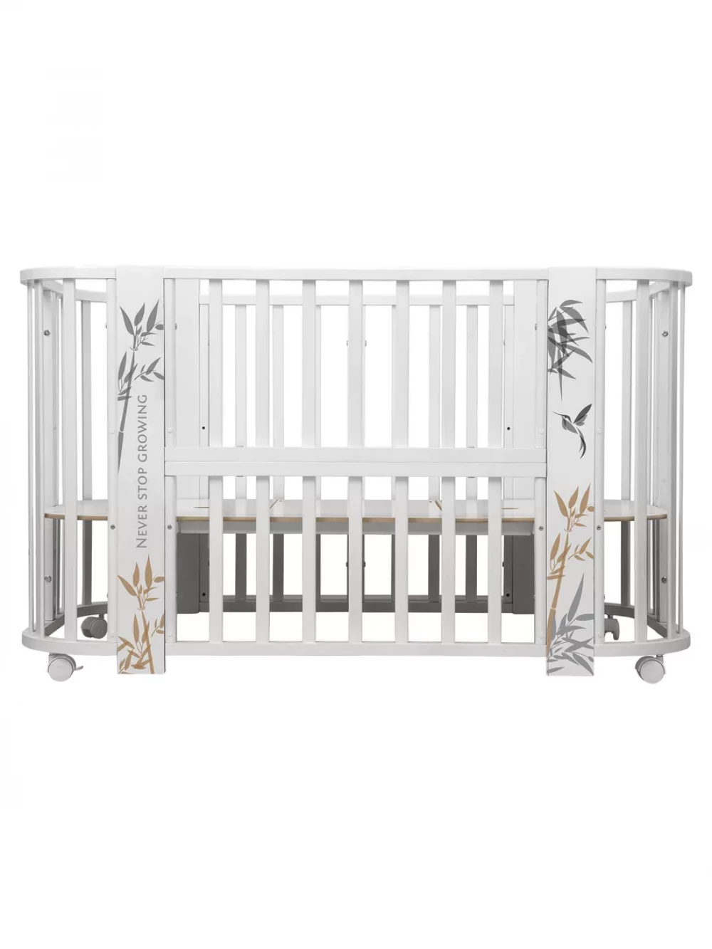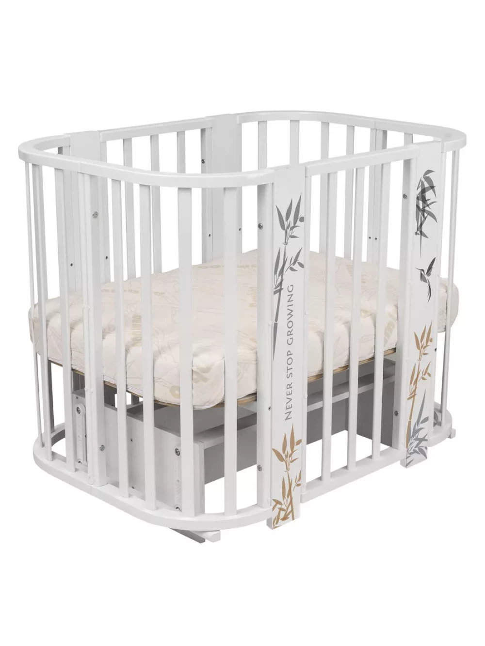 Кроватка-трансформер Indigo Green Line 5 в 1 с маятником 100*70 / 140*70 (закругленный) бамбук