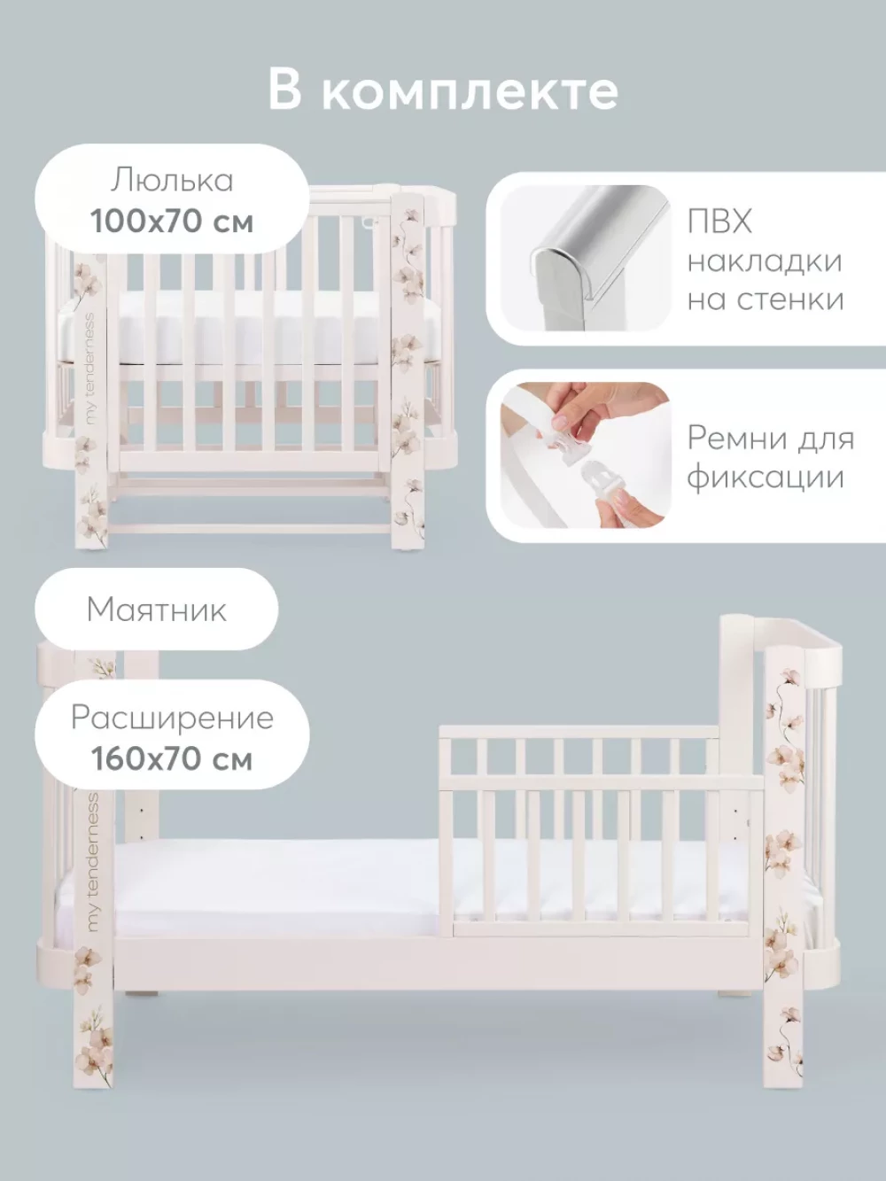 Кроватка-трансформер Happy Baby Mommy Love 160*70 и 100*70 (закругленный) pink