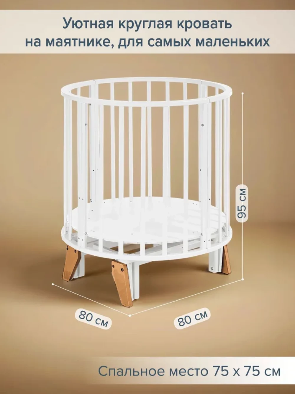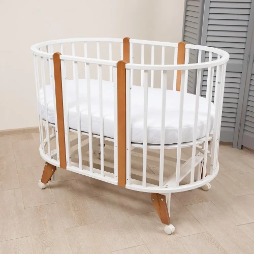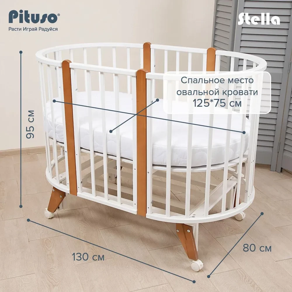 Кроватка-трансформер Pituso Stella 6 в 1 с маятником 125*75 (овал) и 75*75 (круг) белый/бук