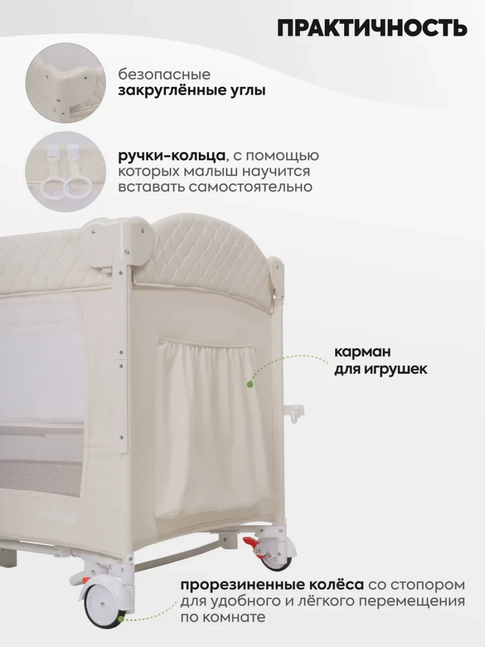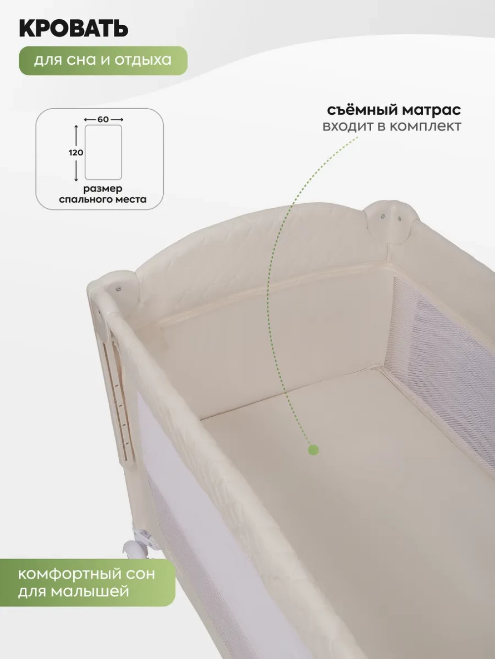 манеж кровать; сумка-чехол для переноски; 2 колеса