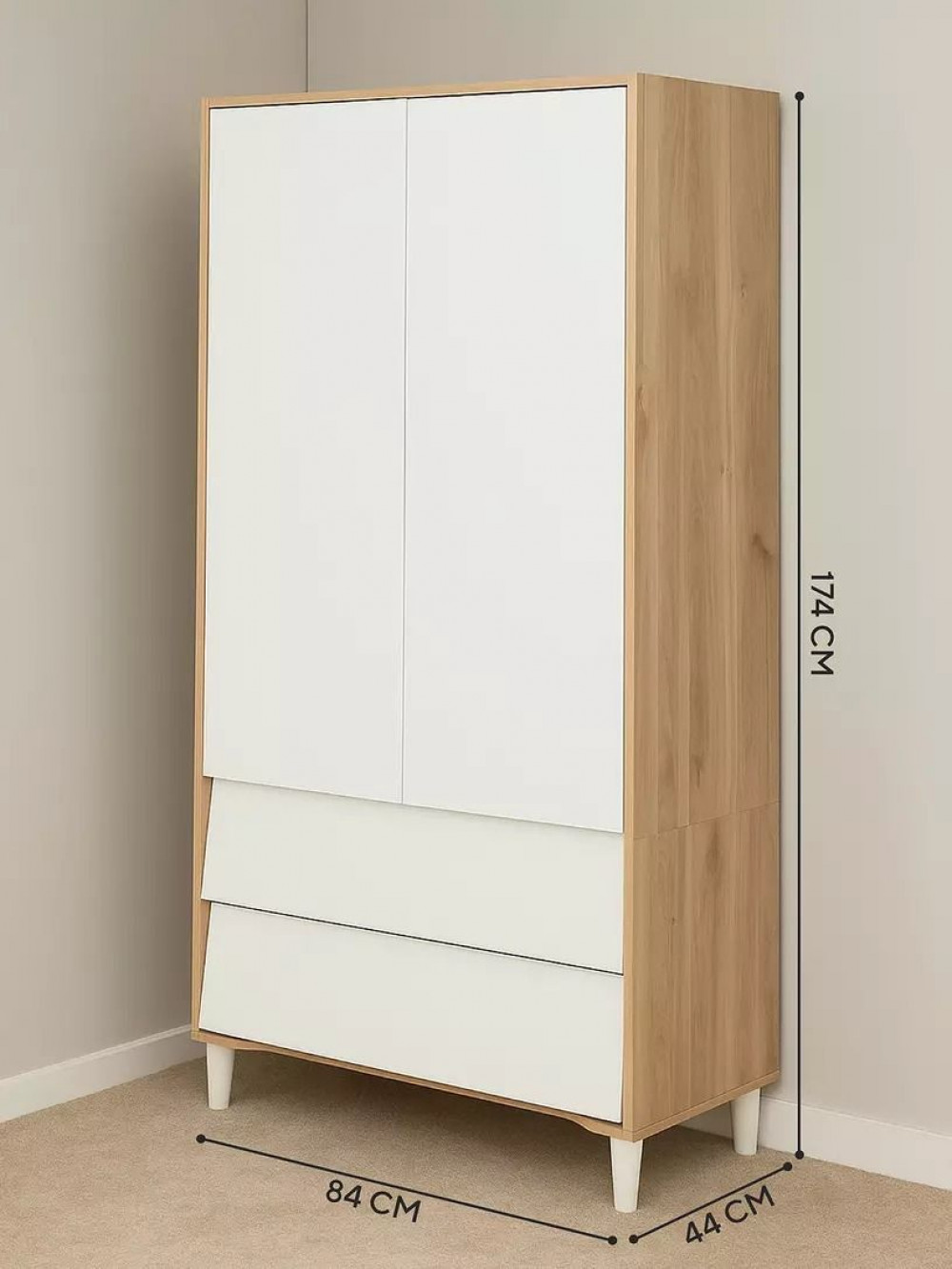 Шкаф Lovely baby ESLA 2-дверный белый/деревянная вставка