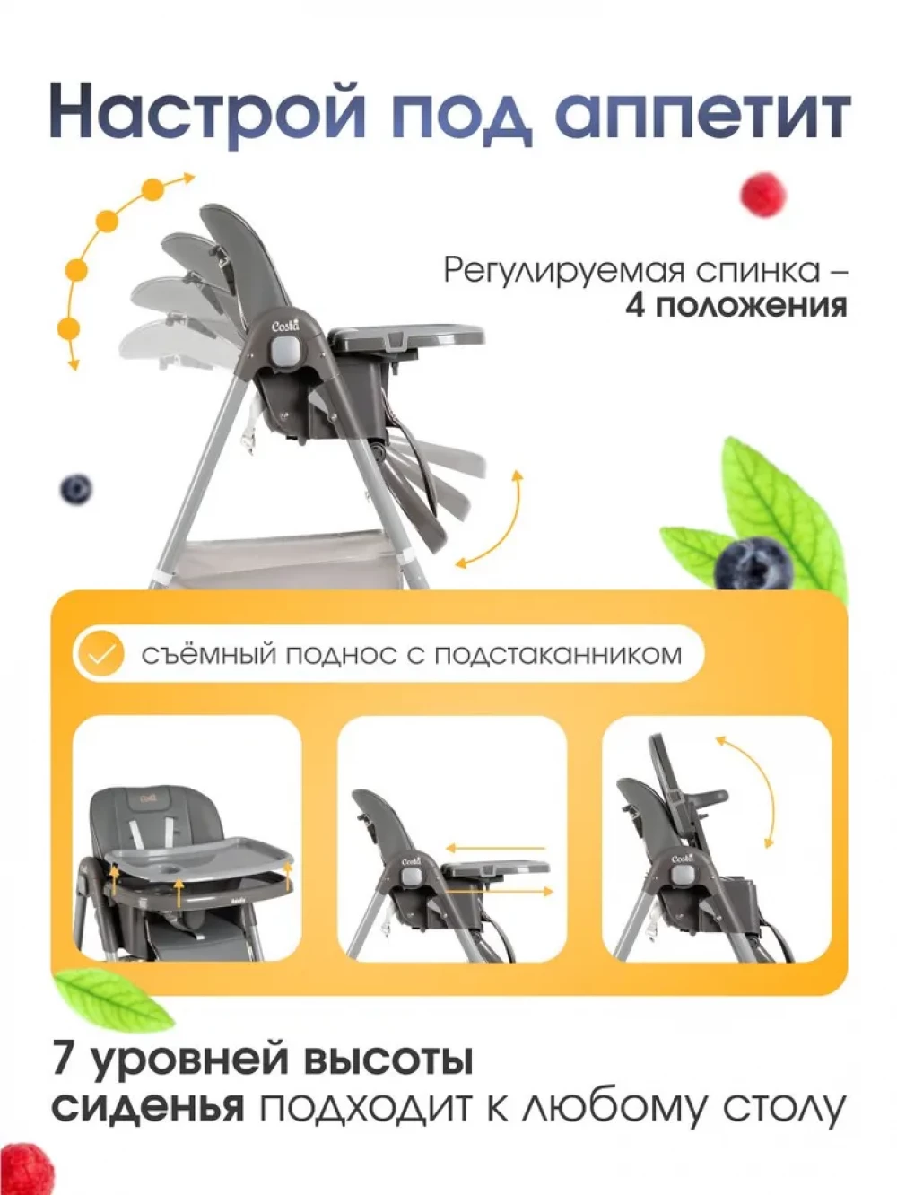 Регулировка стульчика для кормления: