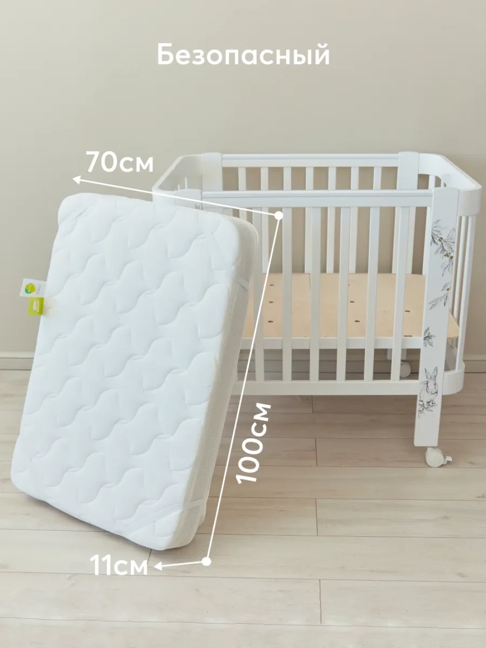 Матрас для кроватки 100*70 11 см кокос беспружинный прямоугольный закругленный Happy Baby Mommy Love