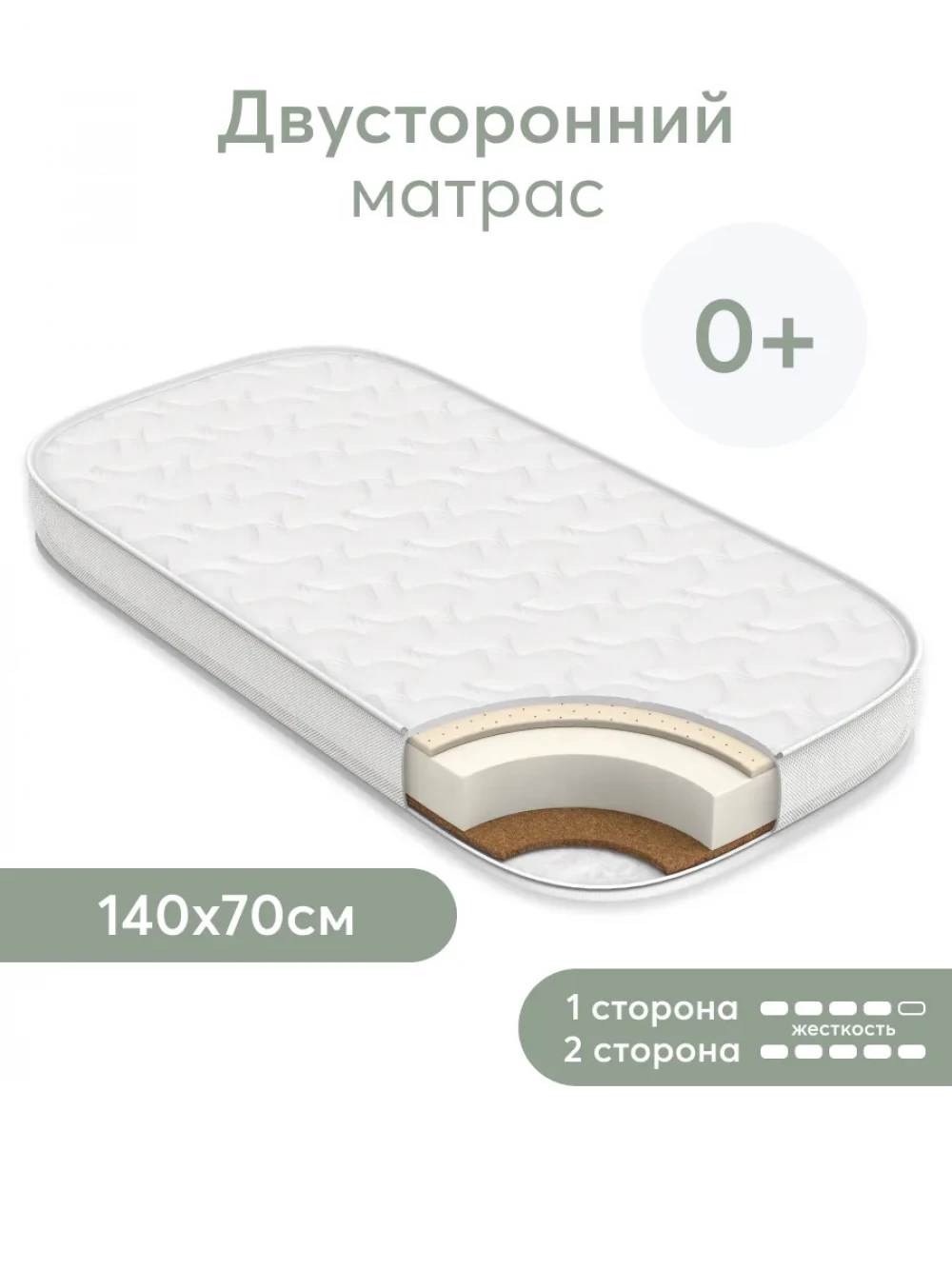 Матрас для кроватки 140*70 11 см кокос прямоугольный закругленный Happy Baby Mommy Lux, Лель БИ, Оливия