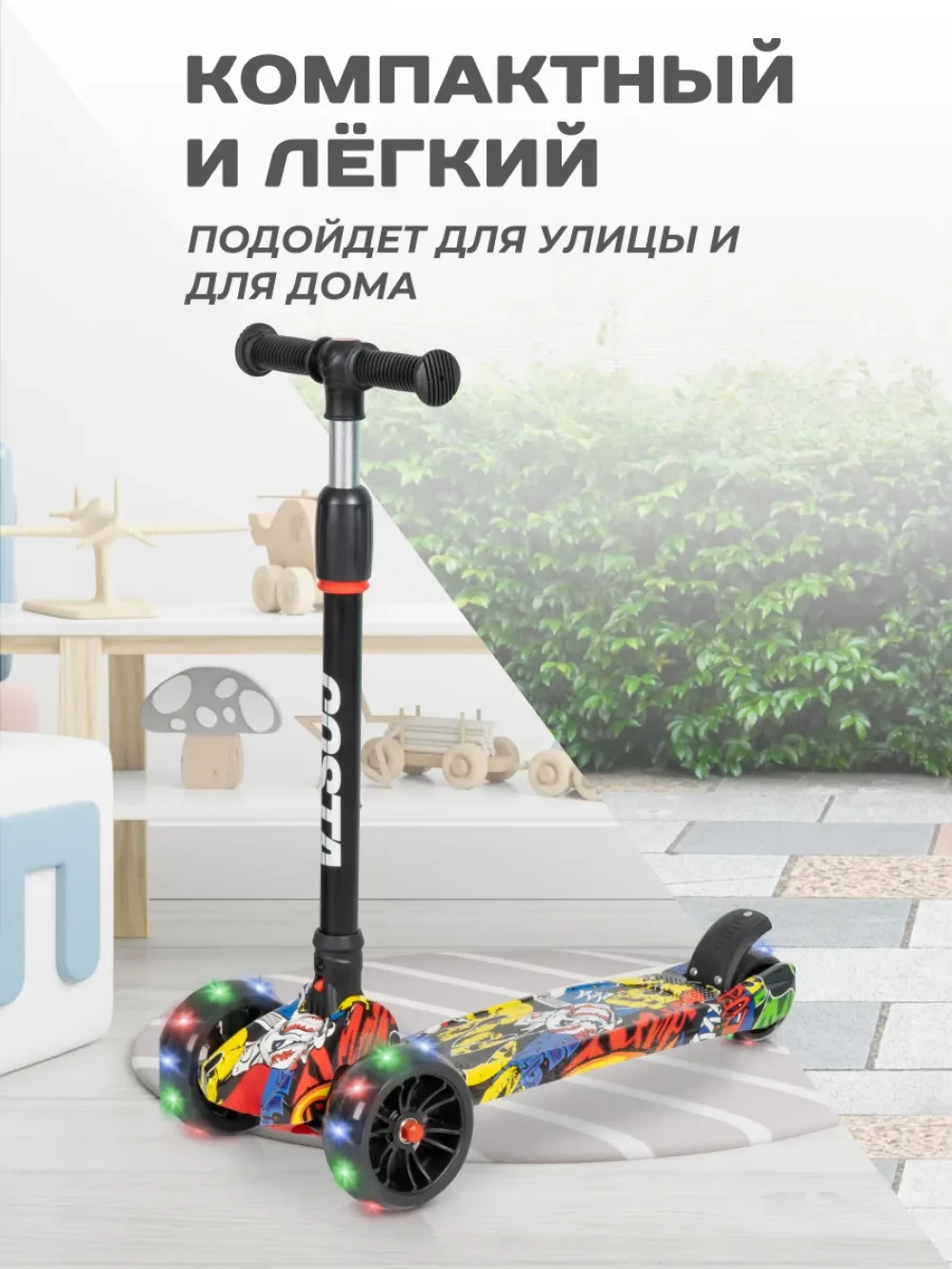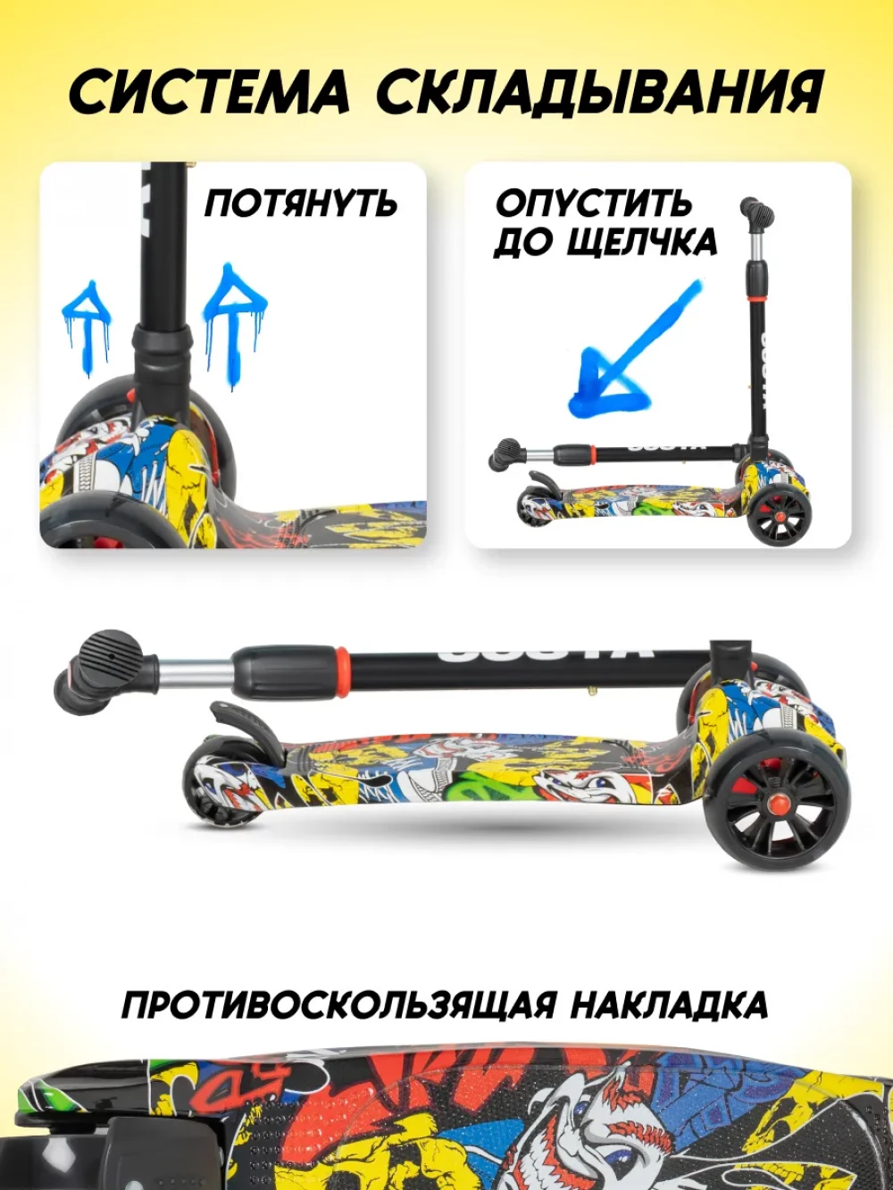 складная конструкция; противоскользящее покрытие деки; широкие колеса