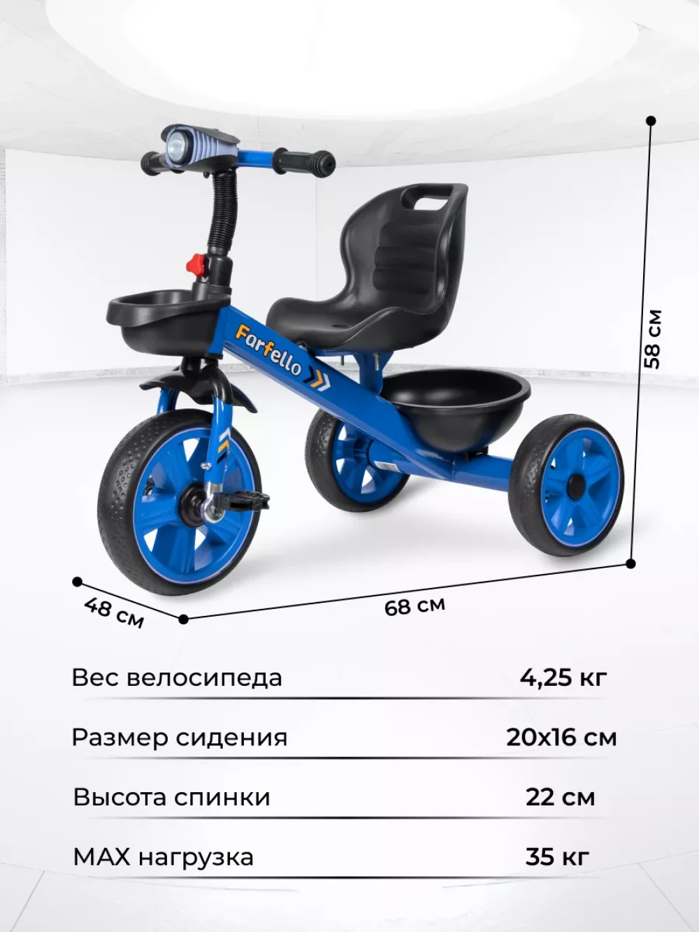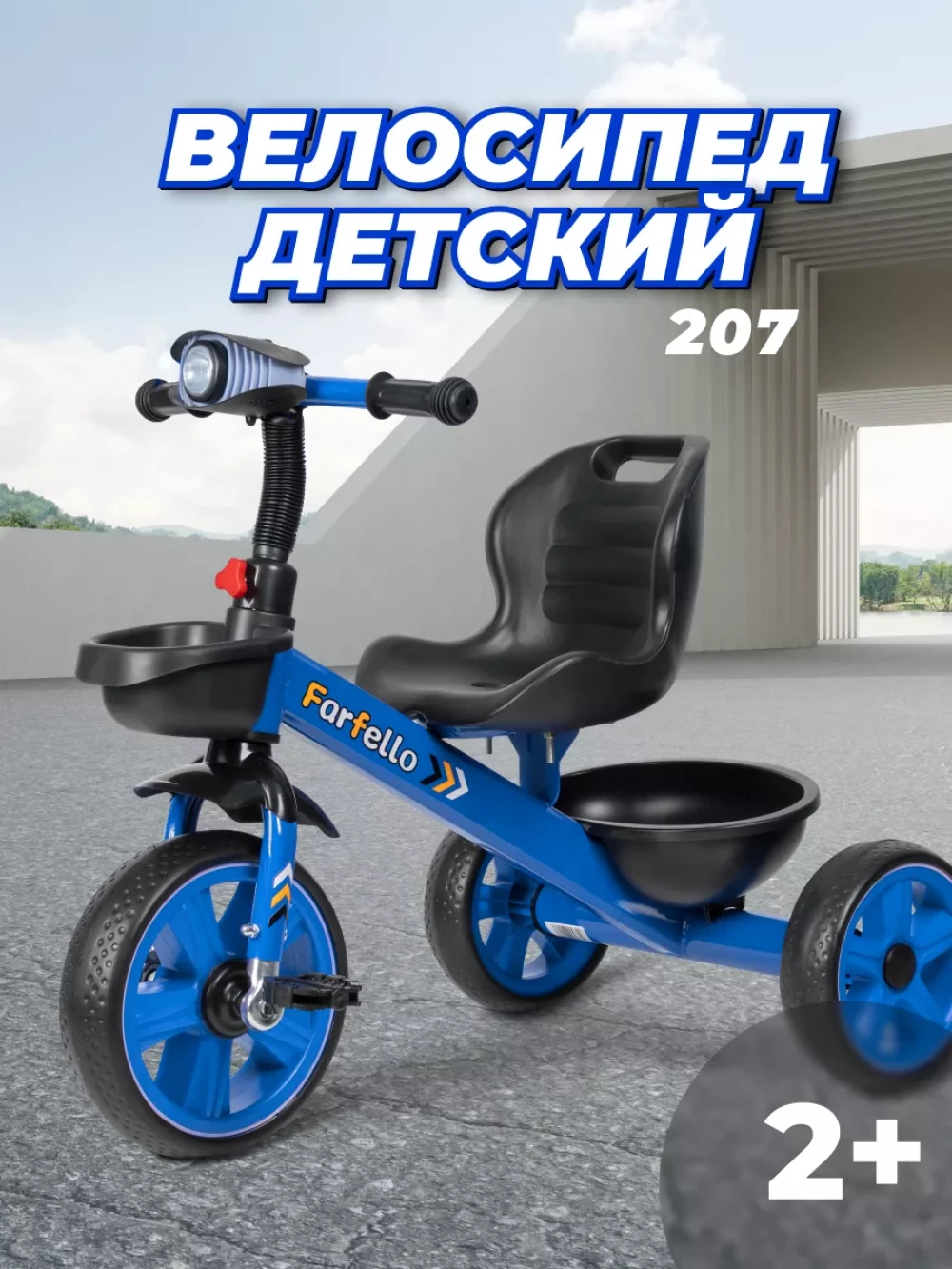 корзина для мелочей и корзина для игрушек; фонарь с музыкальной панелью; инструкция; рама, руль, колеса, сидение