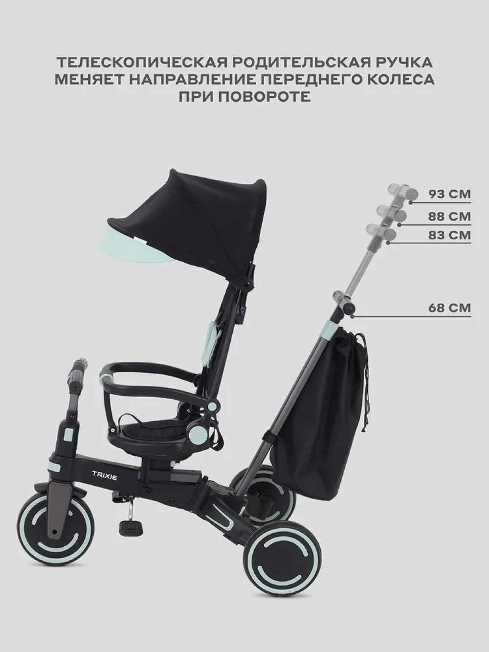 Козырек от солнца, Подножка, Ремни безопасности, Родительская ручка, Складной, Сумка
