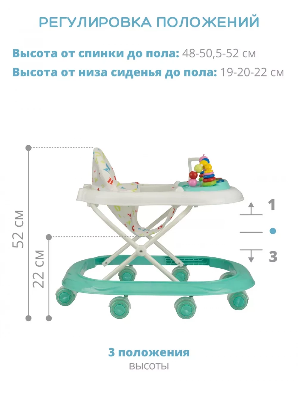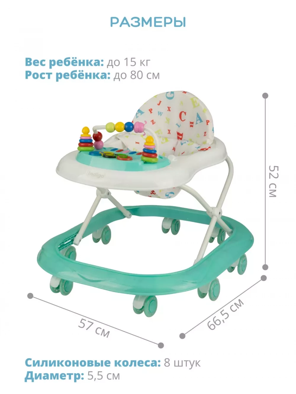 Ходунки детские для малышей ABC C; Мягкое съемное сидение; Силиконовые колеса - 8шт