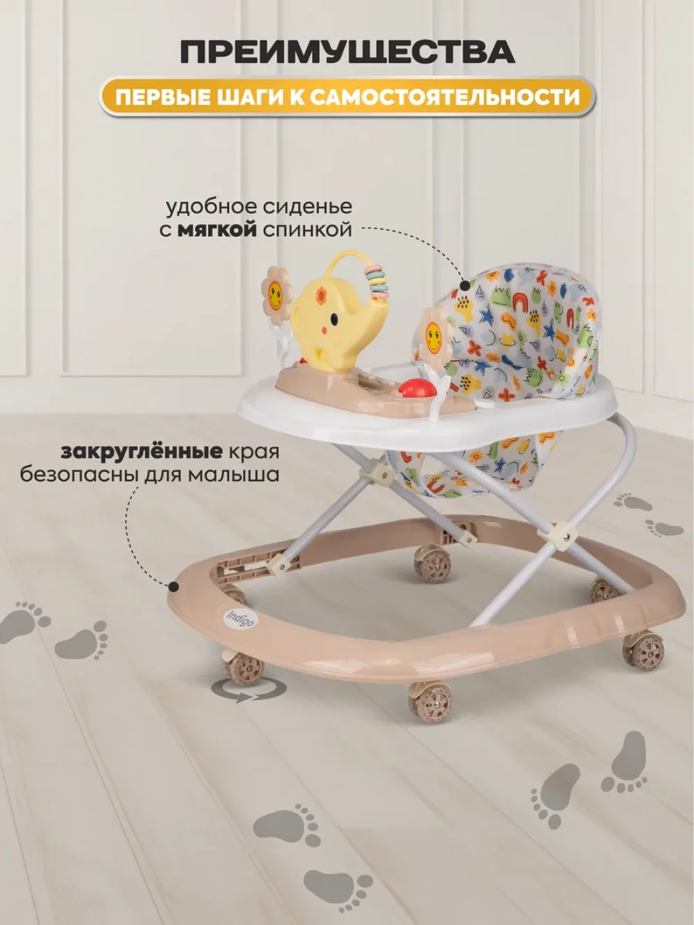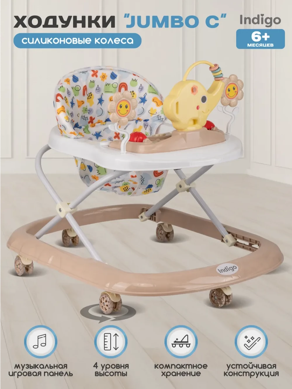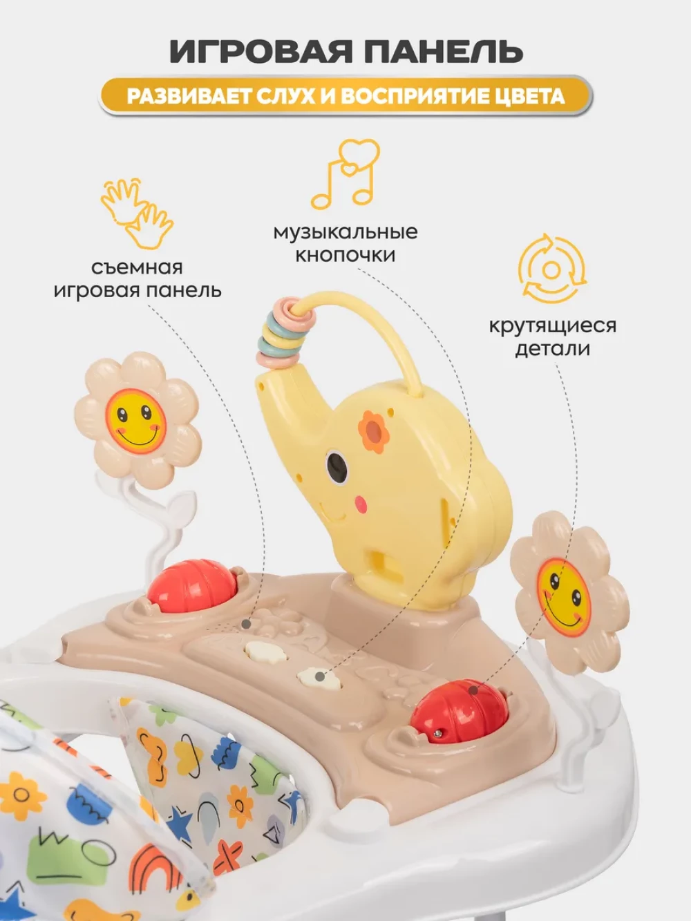 ходунки; 6 колес; сиденье; игрушки; инструкция