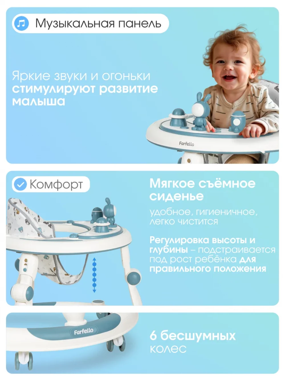 складная конструкция; регулировка высоты и глубины сидения; съемная игровая панель
