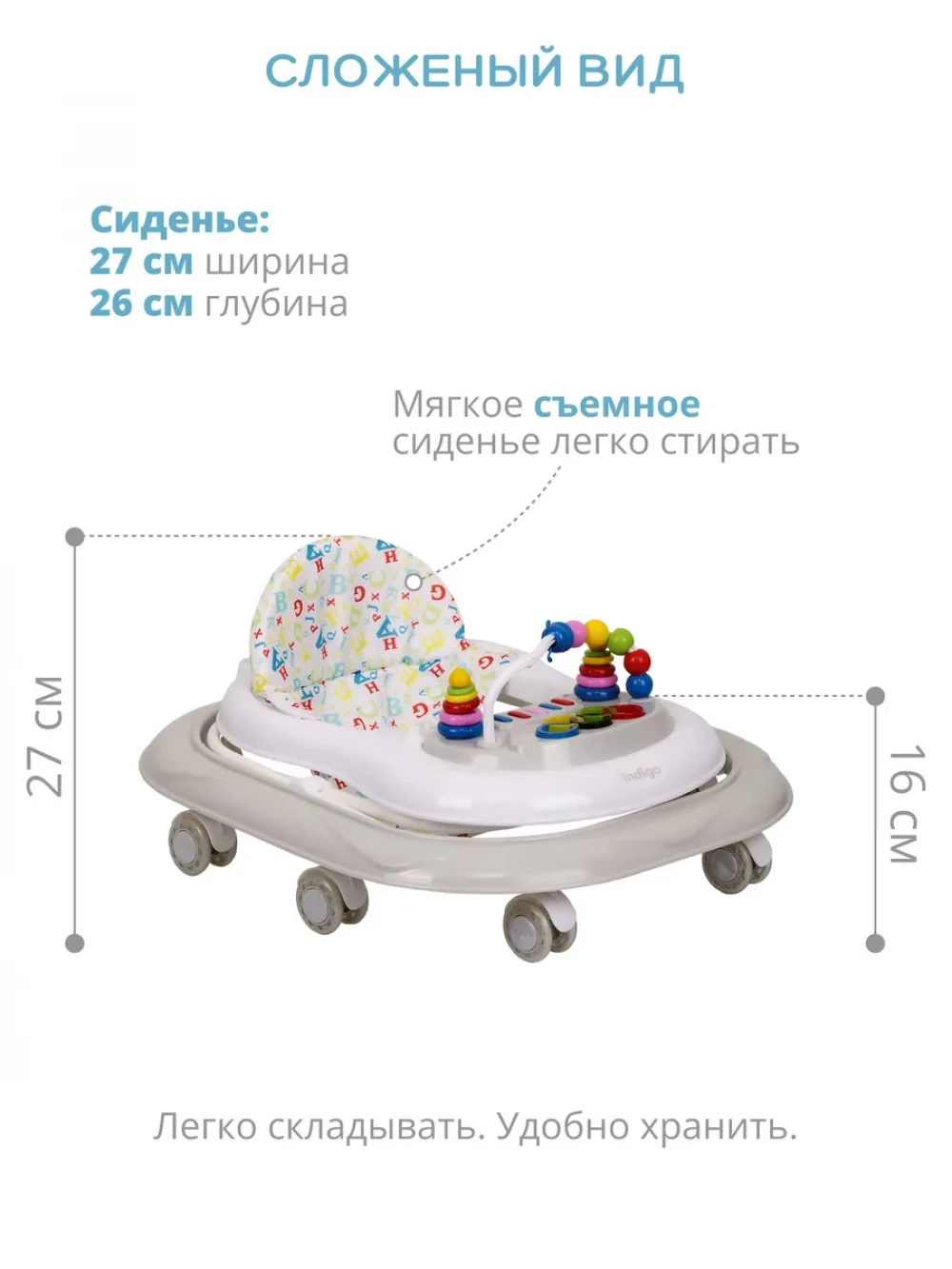 Ходунки детские для малышей ABC C; Мягкое съемное сидение; Силиконовые колеса - 8шт