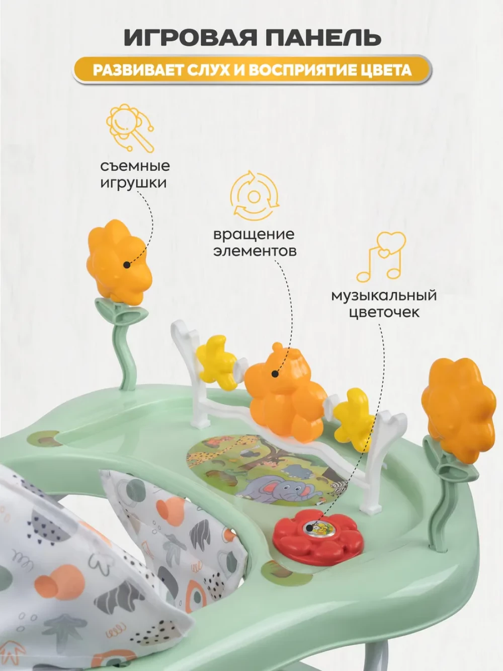 музыкальное сопровождение; регулировка высоты сиденья; съемная игровая панель
