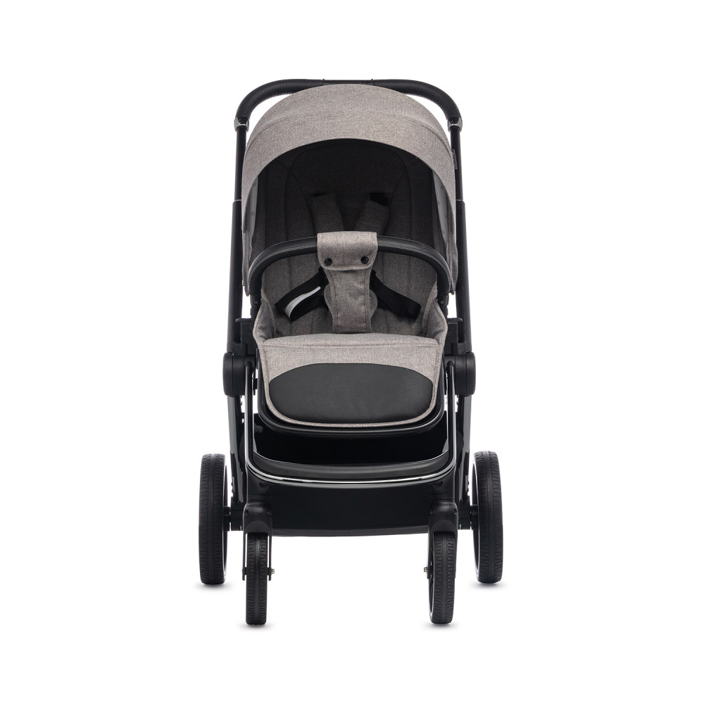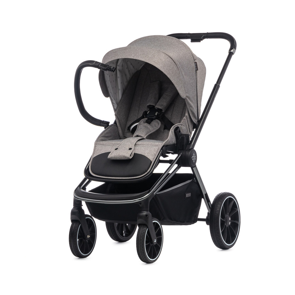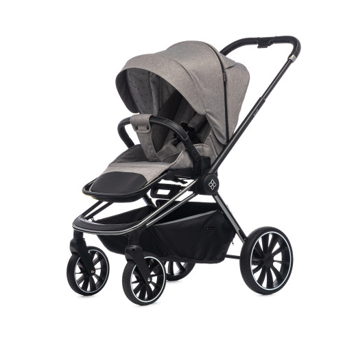 * Стильный дизайн: серый цвет коляски выглядит элегантно и современно.
