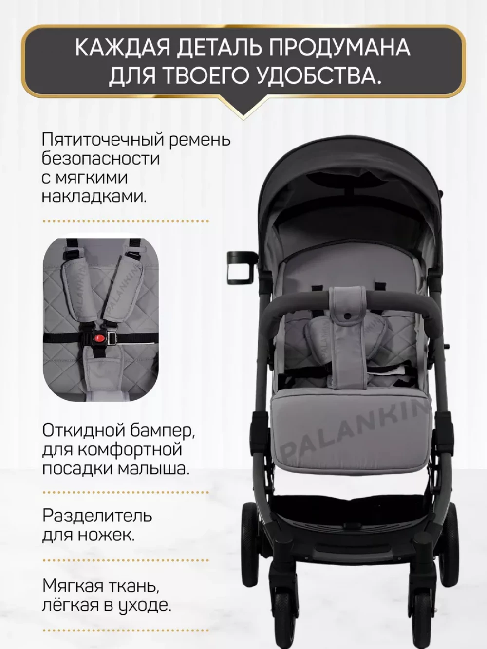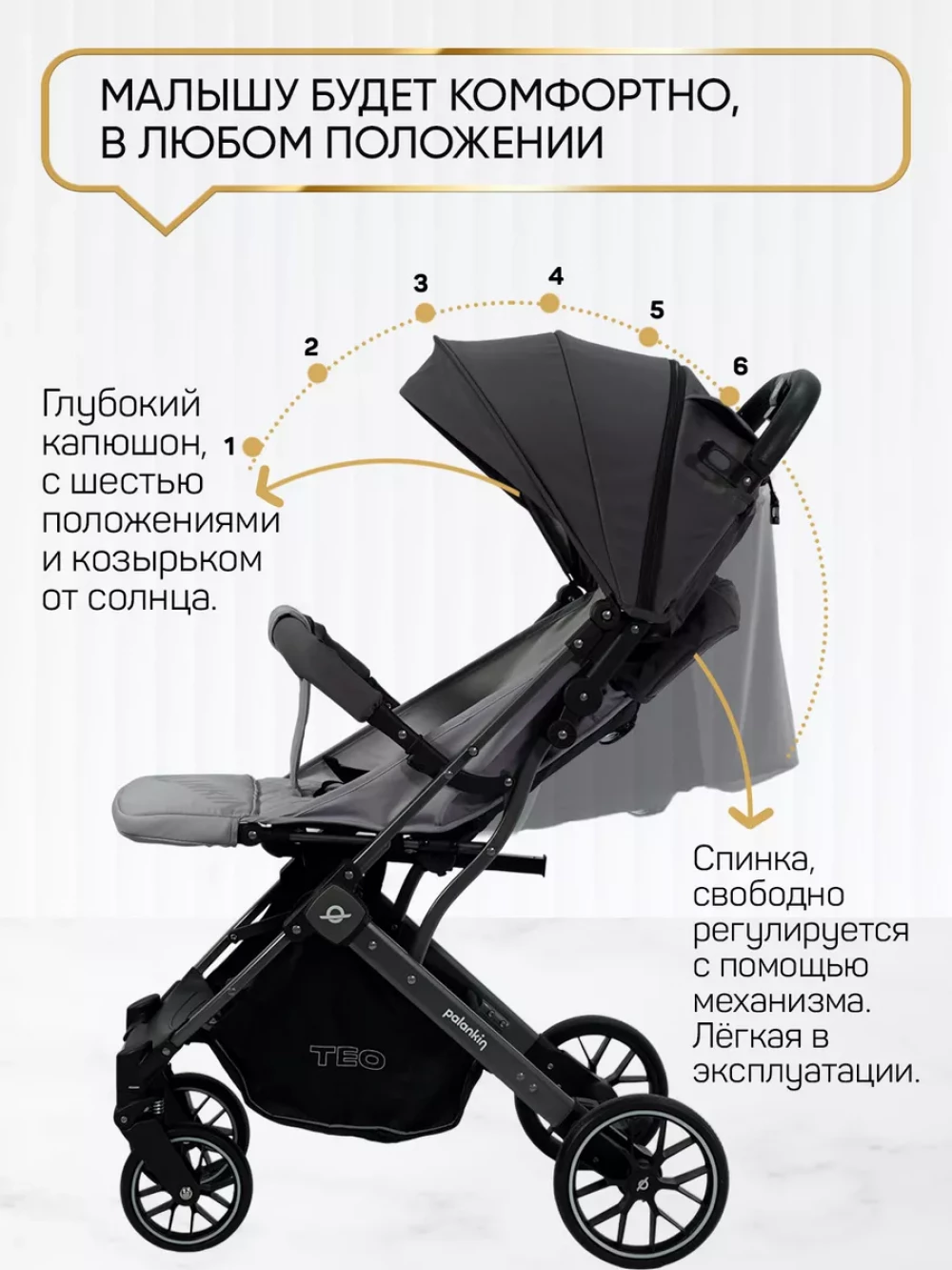утепленная накидка на ножки; съемный подстаканник; вместительная корзина для покупок; москитная сетка; дождевик; чехол для транспортировки