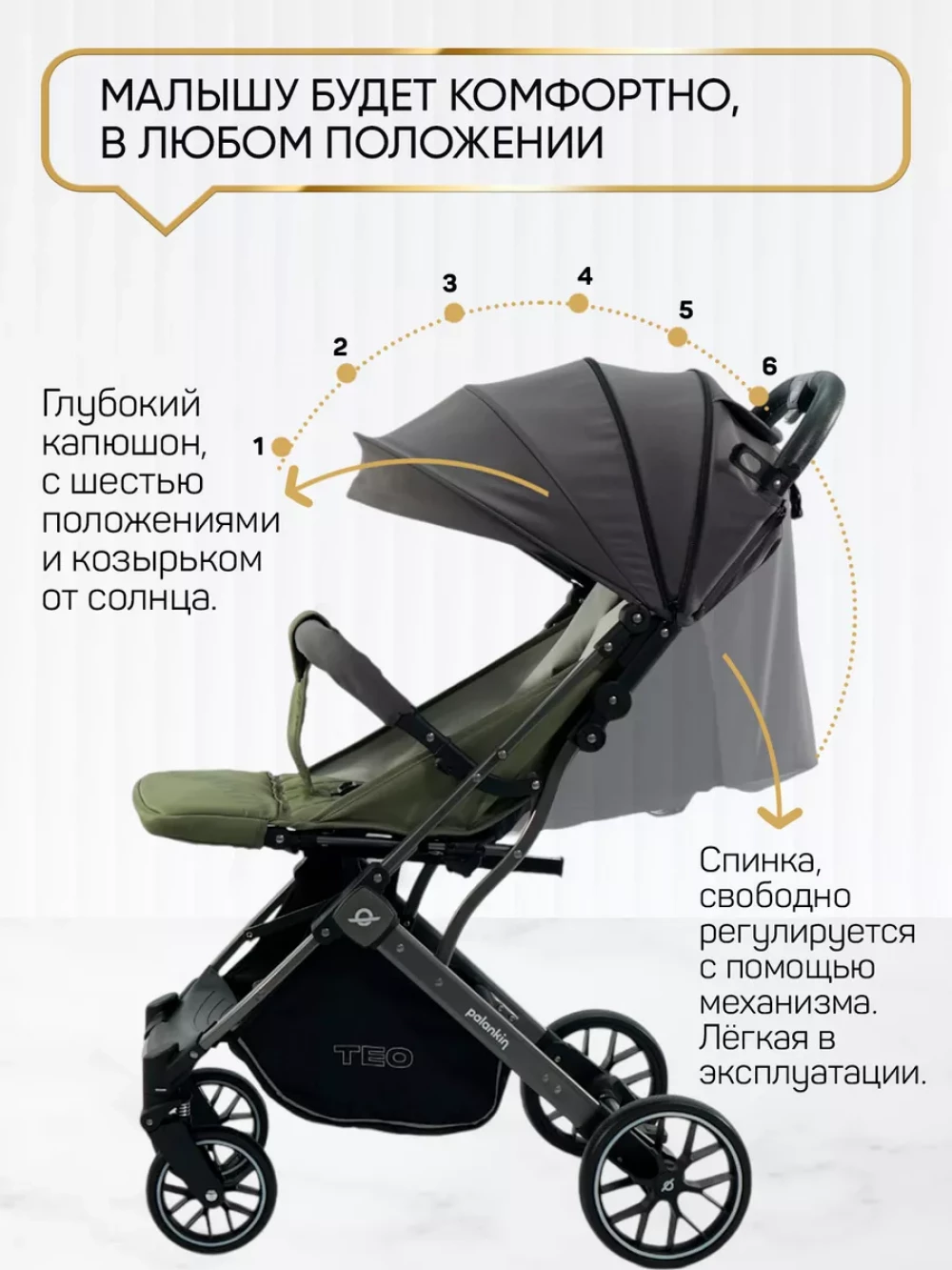 утепленная накидка на ножки; съемный подстаканник; вместительная корзина для покупок; москитная сетка; дождевик; чехол для транспортировки