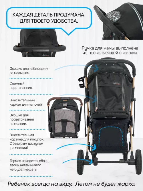 сумка-рюкзак для мамы; дождевик; москитная сетка; подстаканник; чехол для коляски; утепленная накидка на ножки; вместительная корзина для покупок