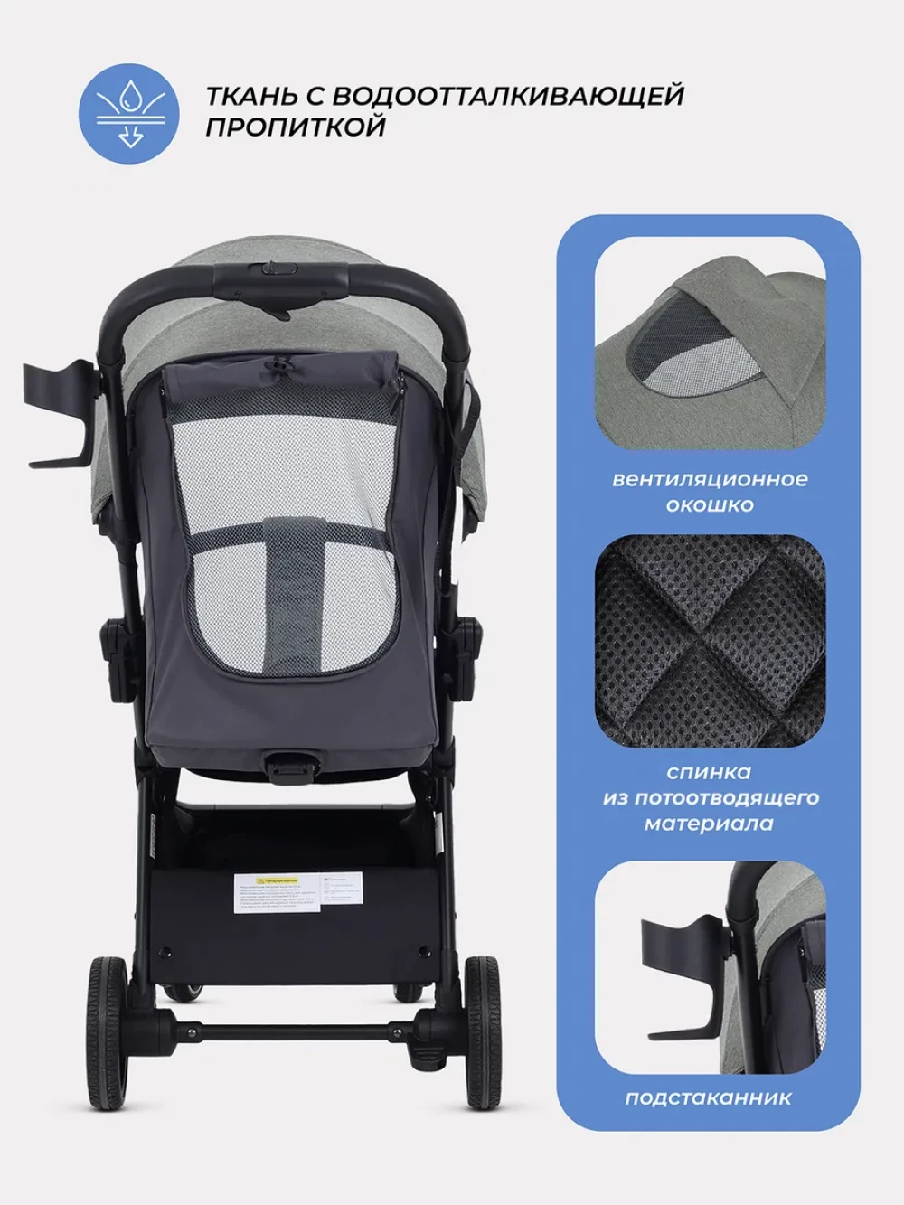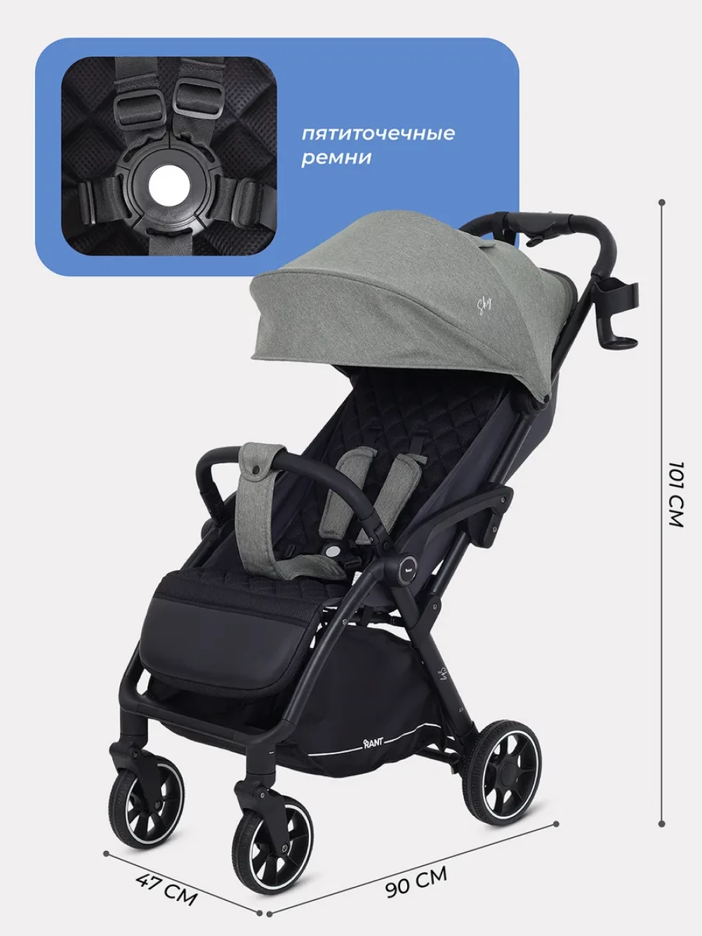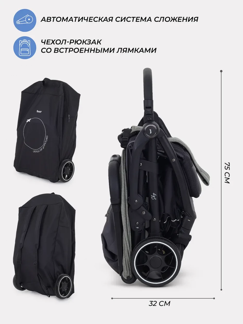 автоматическое складывание; регулируемая спинка; пятиточечные ремни безопасности