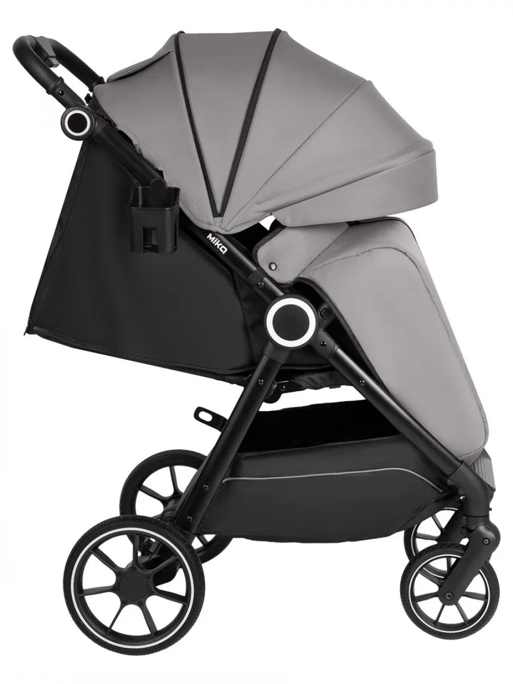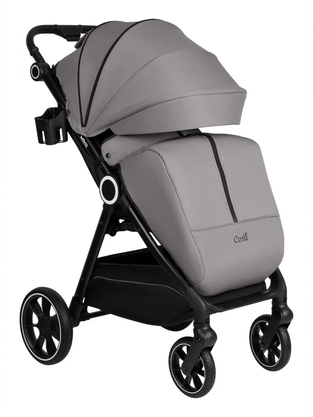 амортизация; регулировка высоты ручки; с большим капюшоном