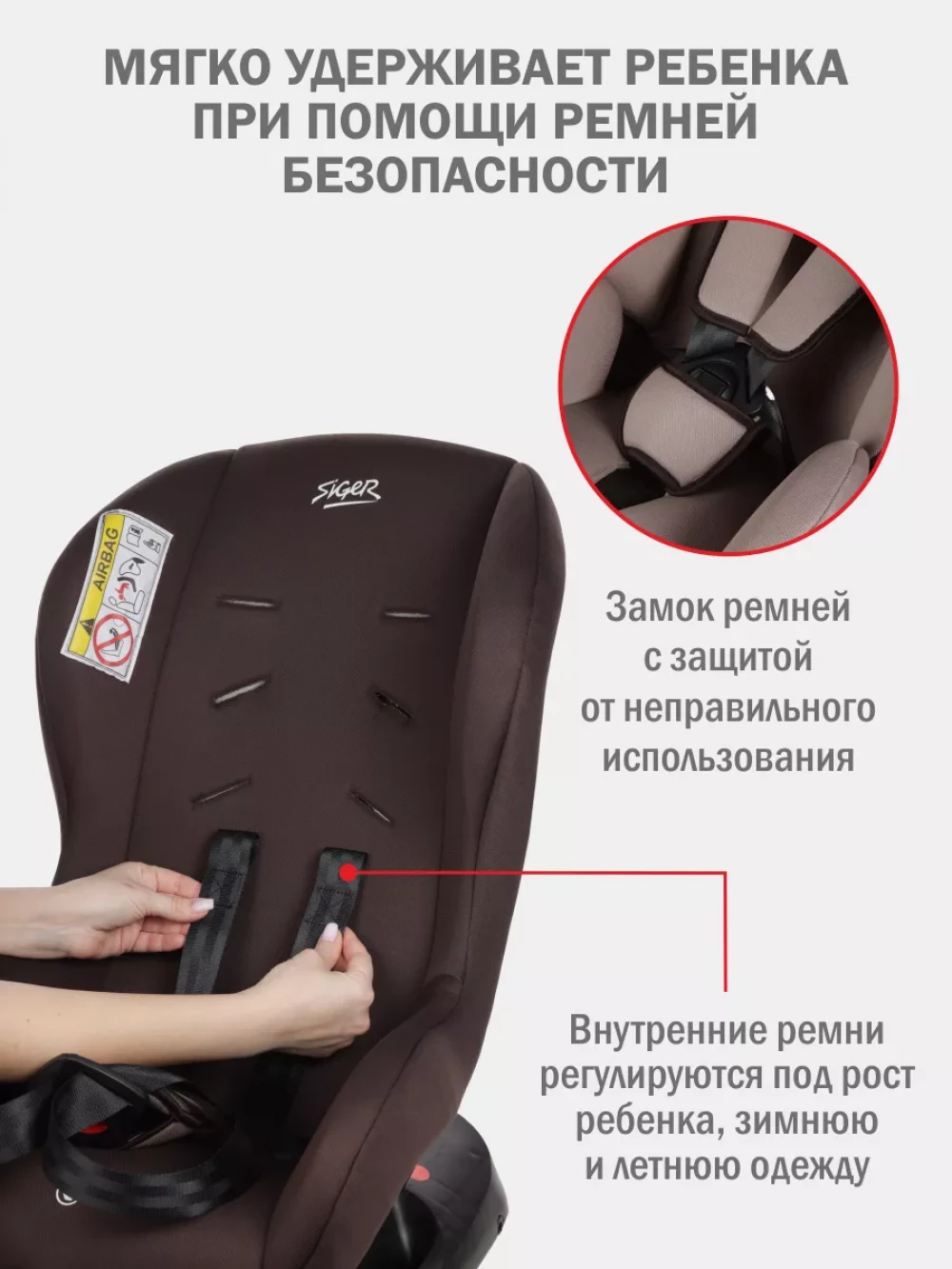 регулировка наклона спинки; регулировка высоты внутренних ремней; съемный чехол