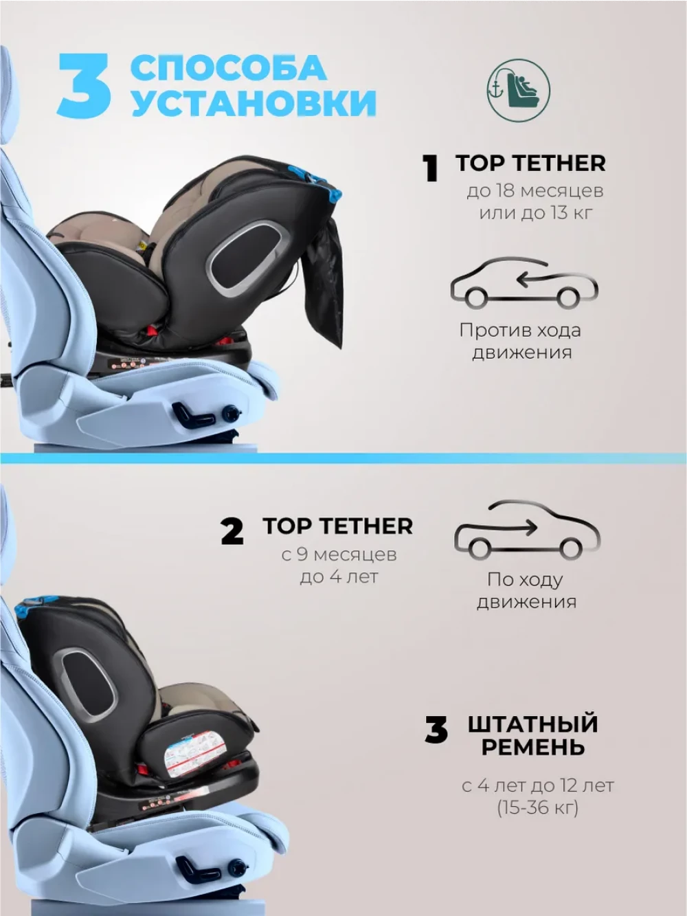 Isofix; штатный ремень автомобиля; якорный ремень