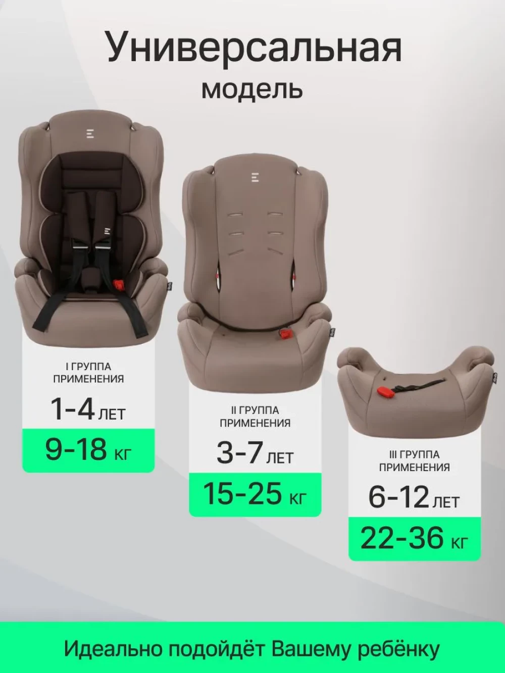 трансформируется в бустер; регулировка высоты внутренних ремней; регулировка натяжения ремней