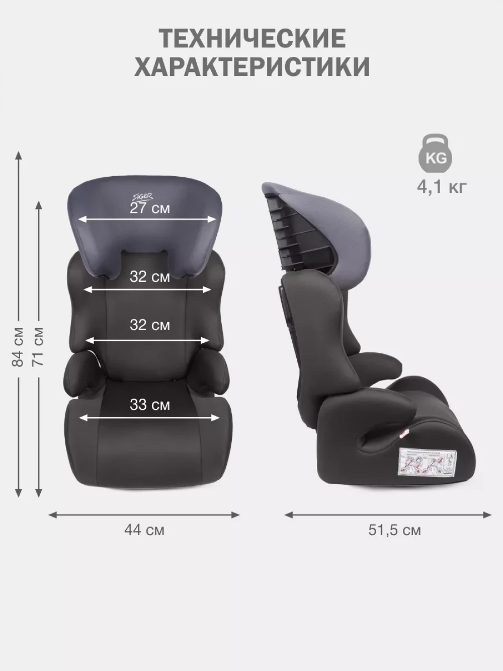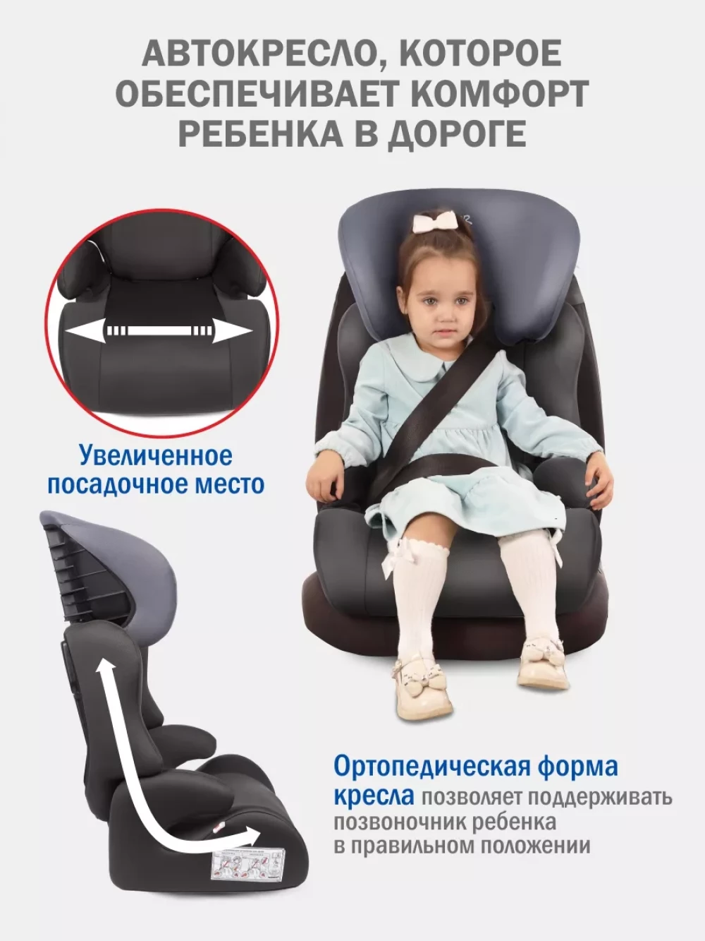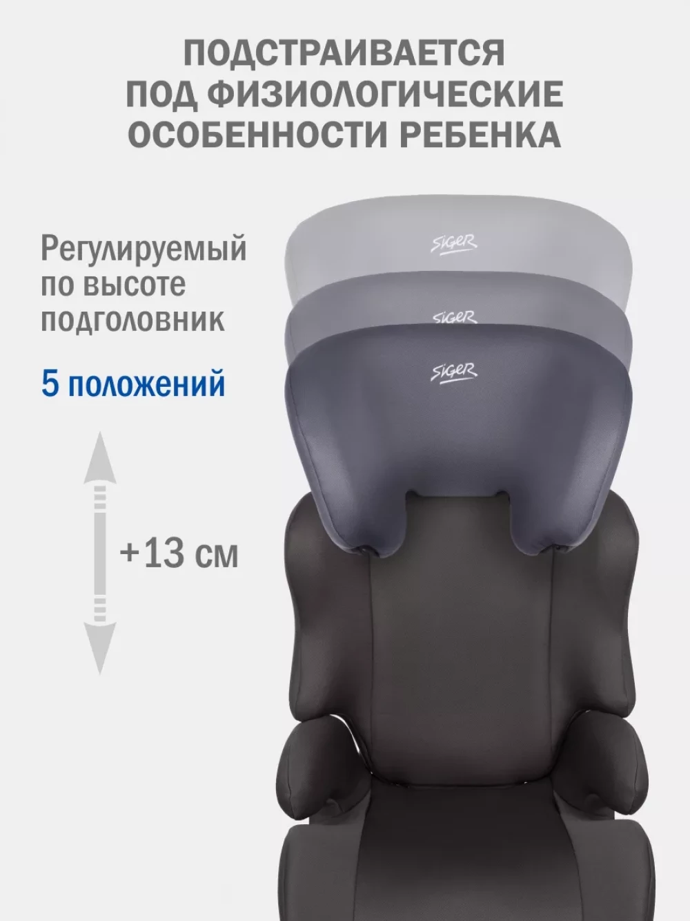 регулировка высоты подголовника; съемный чехол; трансформируется в бустер