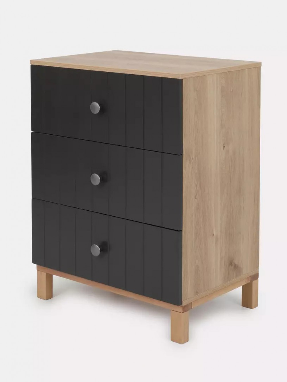 Комод изготовлен из высококачественных материалов, что гарантирует его долговечность и надёжность. Каркас выполнен из МДФ, а фасады — из МДФ и высококачественного пластика.