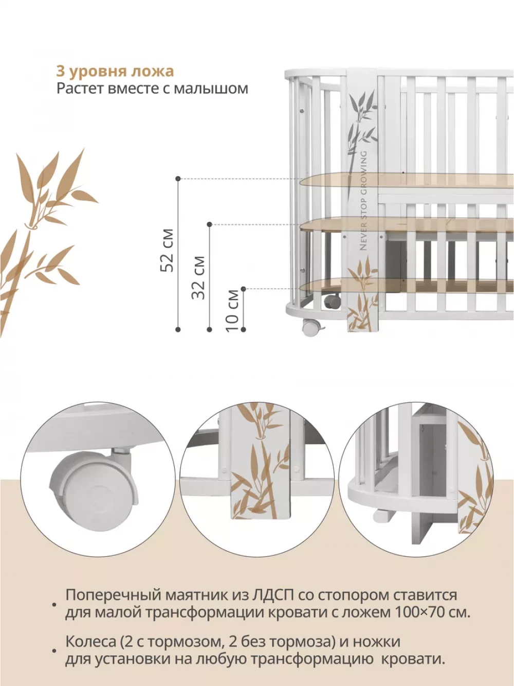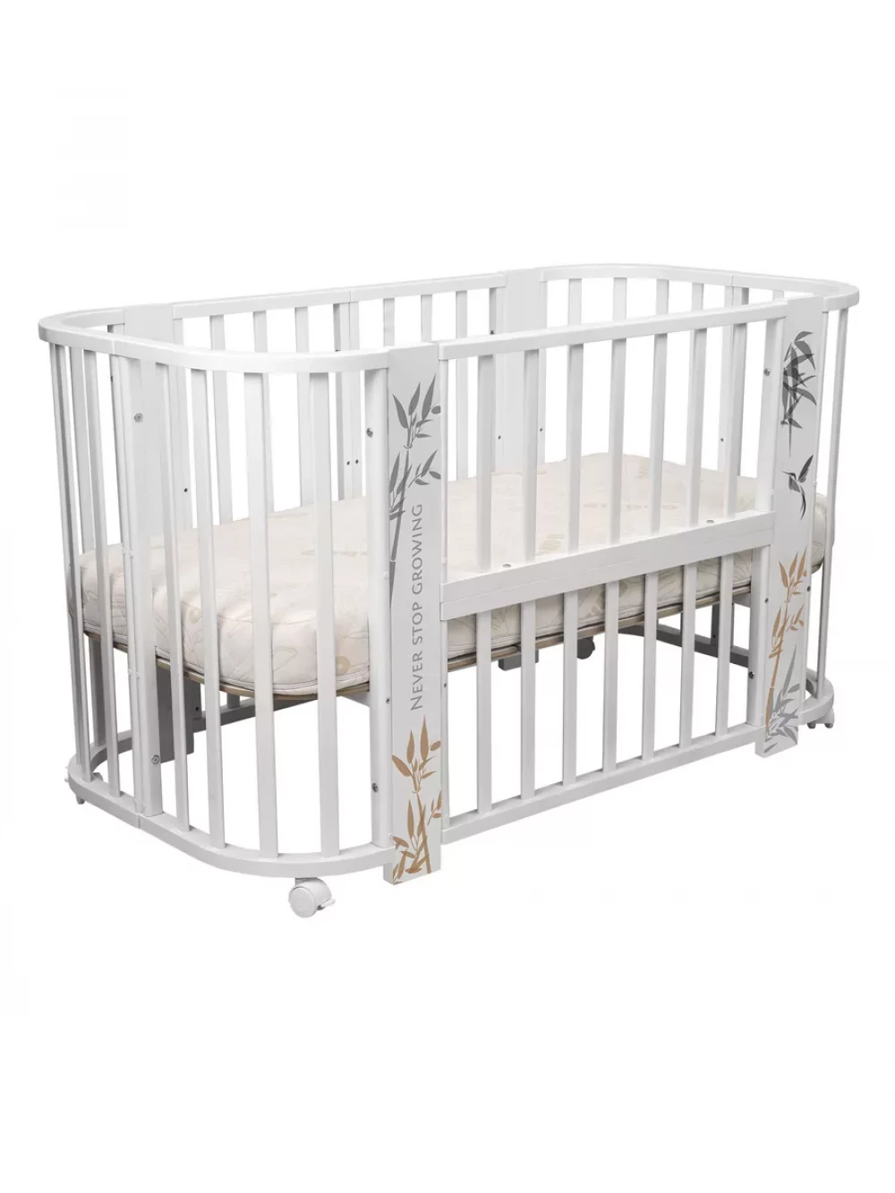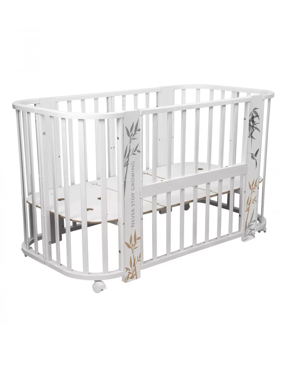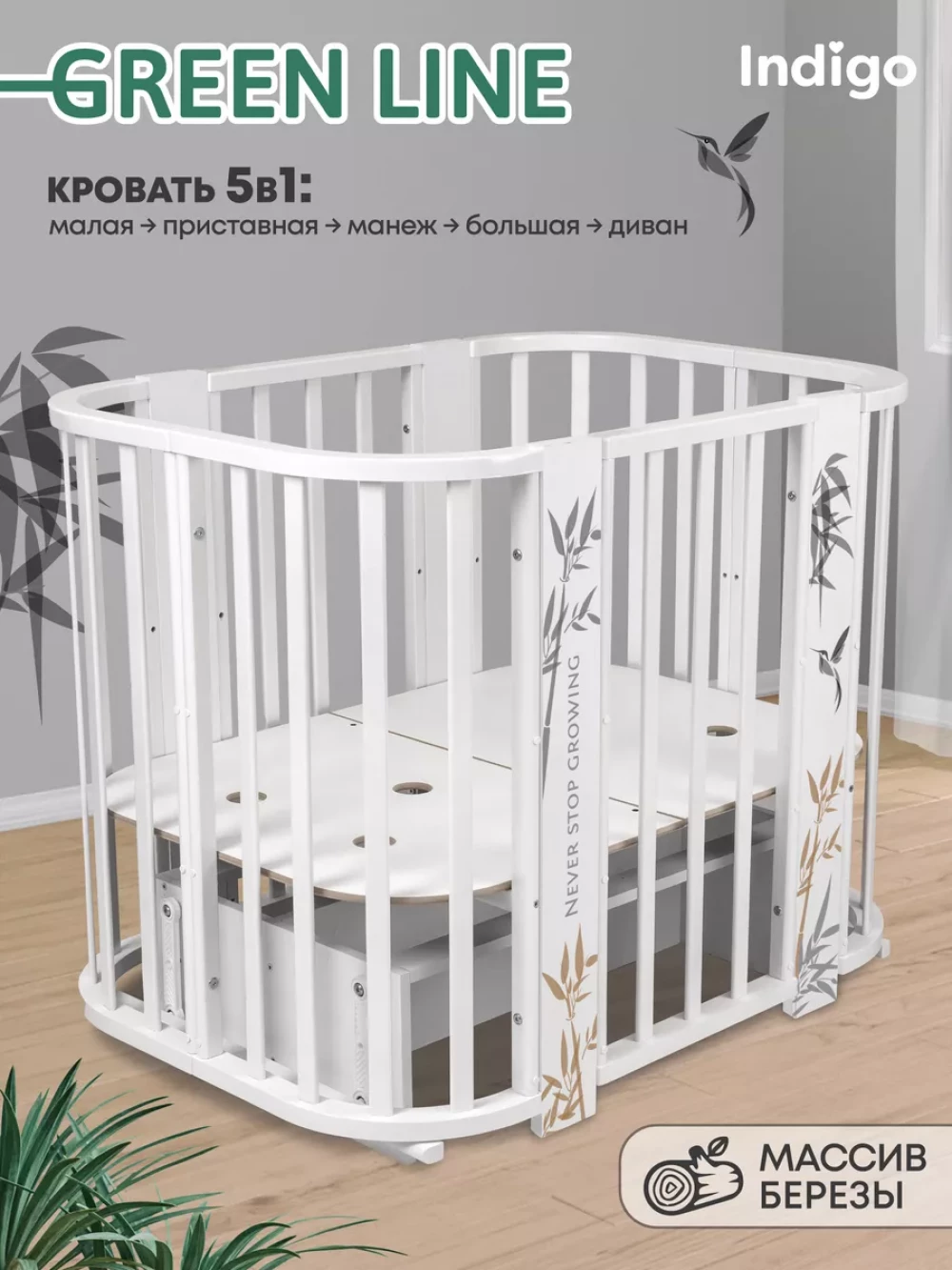 Кроватка-трансформер Indigo Green Line 5 в 1 с маятником 100*70 / 140*70 (закругленный) бамбук