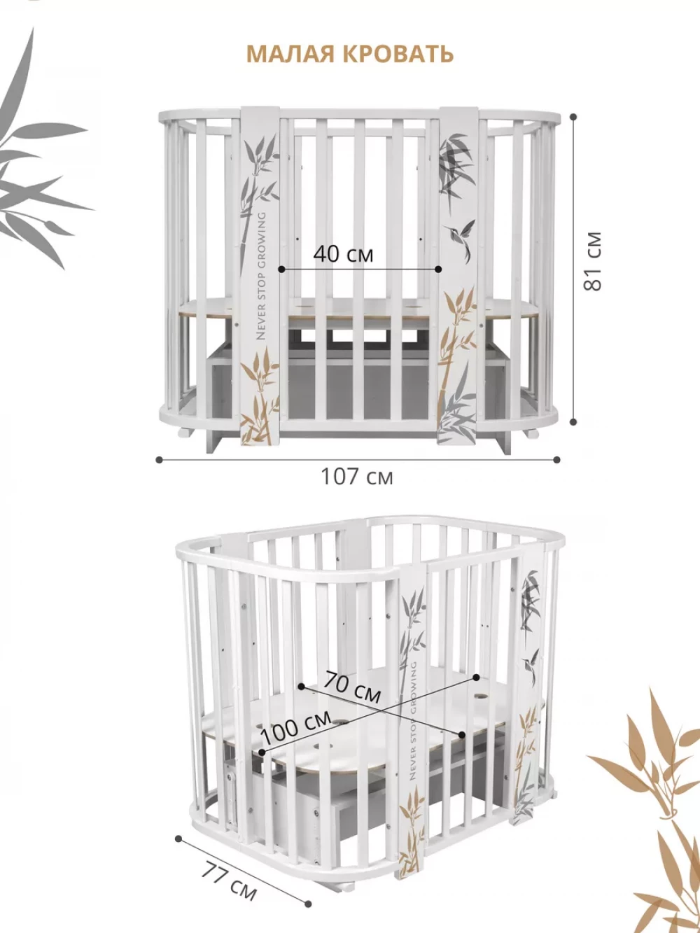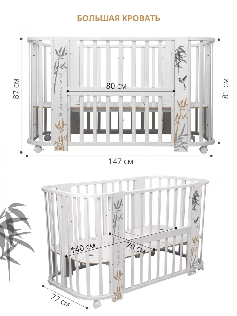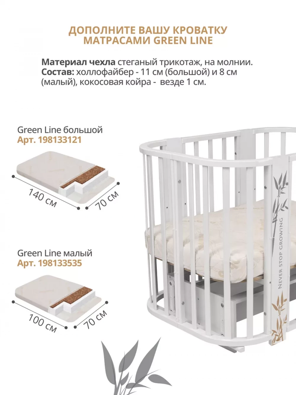 Маржа: 6215 ₽ Иконка в избранное Быстрый просмотр Кроватка-трансформер Indigo Green Line 5 в 1 с маятником 100*70 / 140*70 (закругленный) листочки 12 675 ₽ оптовая