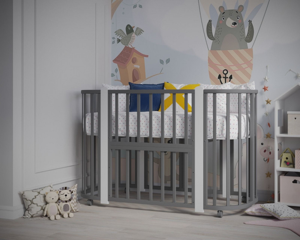 Кроватка-трансформер Incanto Nuvola LUX без маятника 120*60 (закругленный) графит/белый