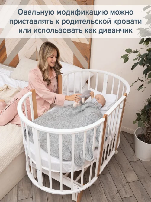 Кроватка-трансформер Pituso Stella 6 в 1 с маятником 125*75 (овал) и 75*75 (круг) белый/бук