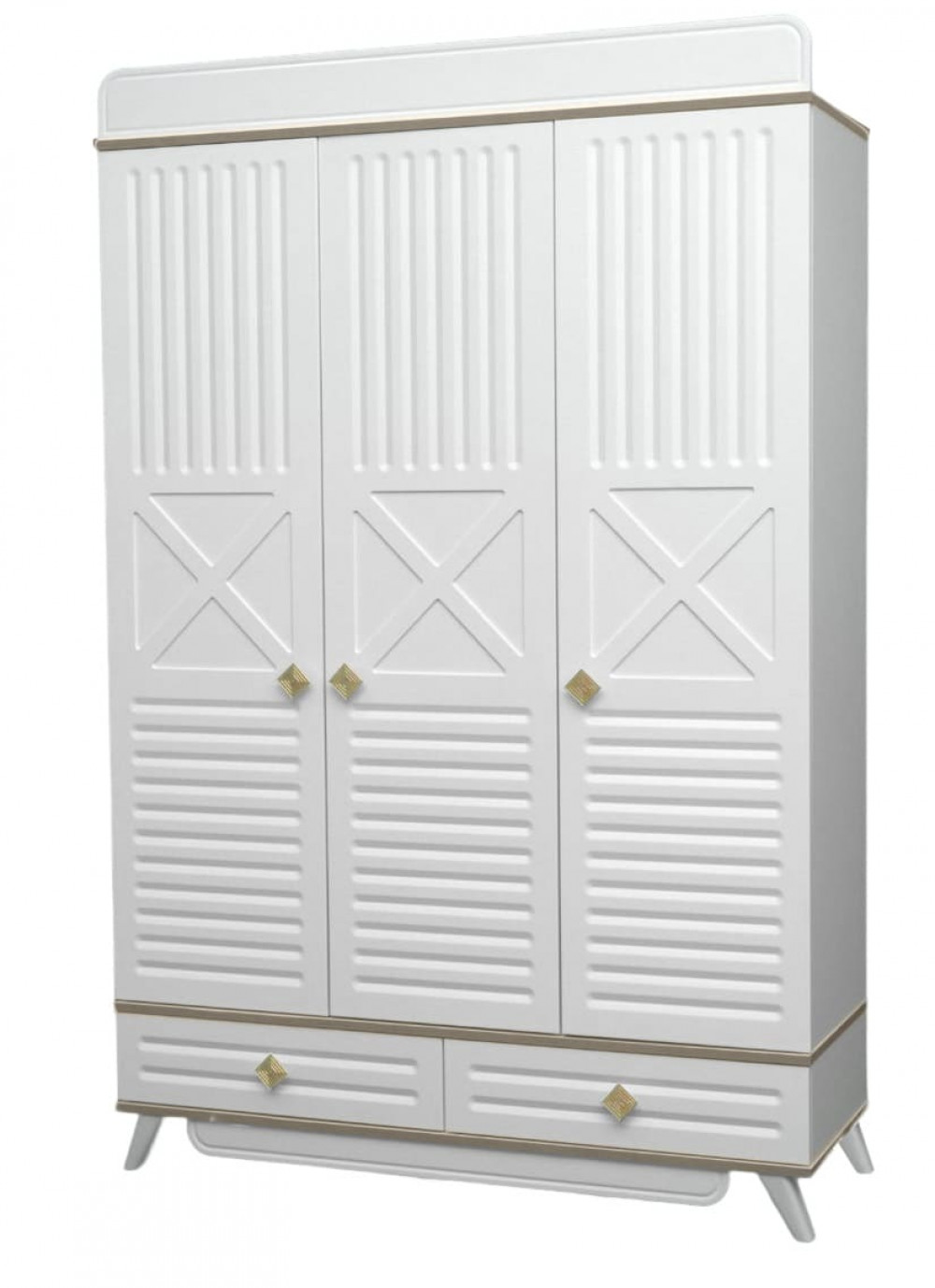 Шкаф Lovely Baby Boni 3-х дверный белый деревянные вставки