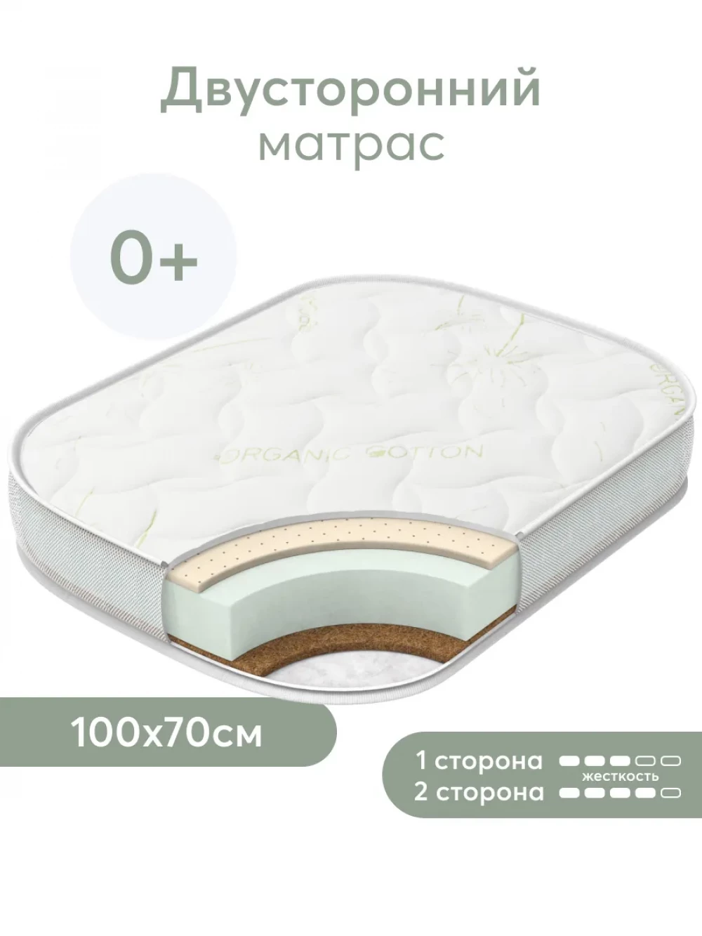Матрас для кроватки 100*70 11 см кокос беспружинный прямоугольный закругленный Happy Baby Mommy Love