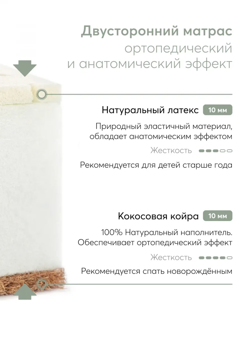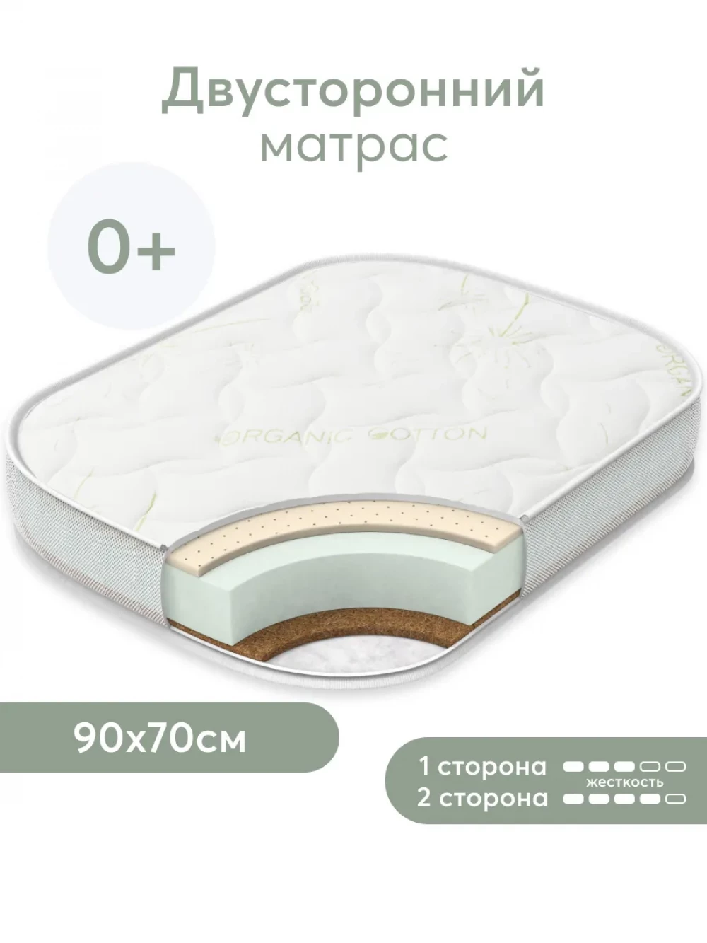 Матрас для кроватки 90*70 11 см кокос беспружинный прямоугольный закругленный Happy Baby Mommy Lux