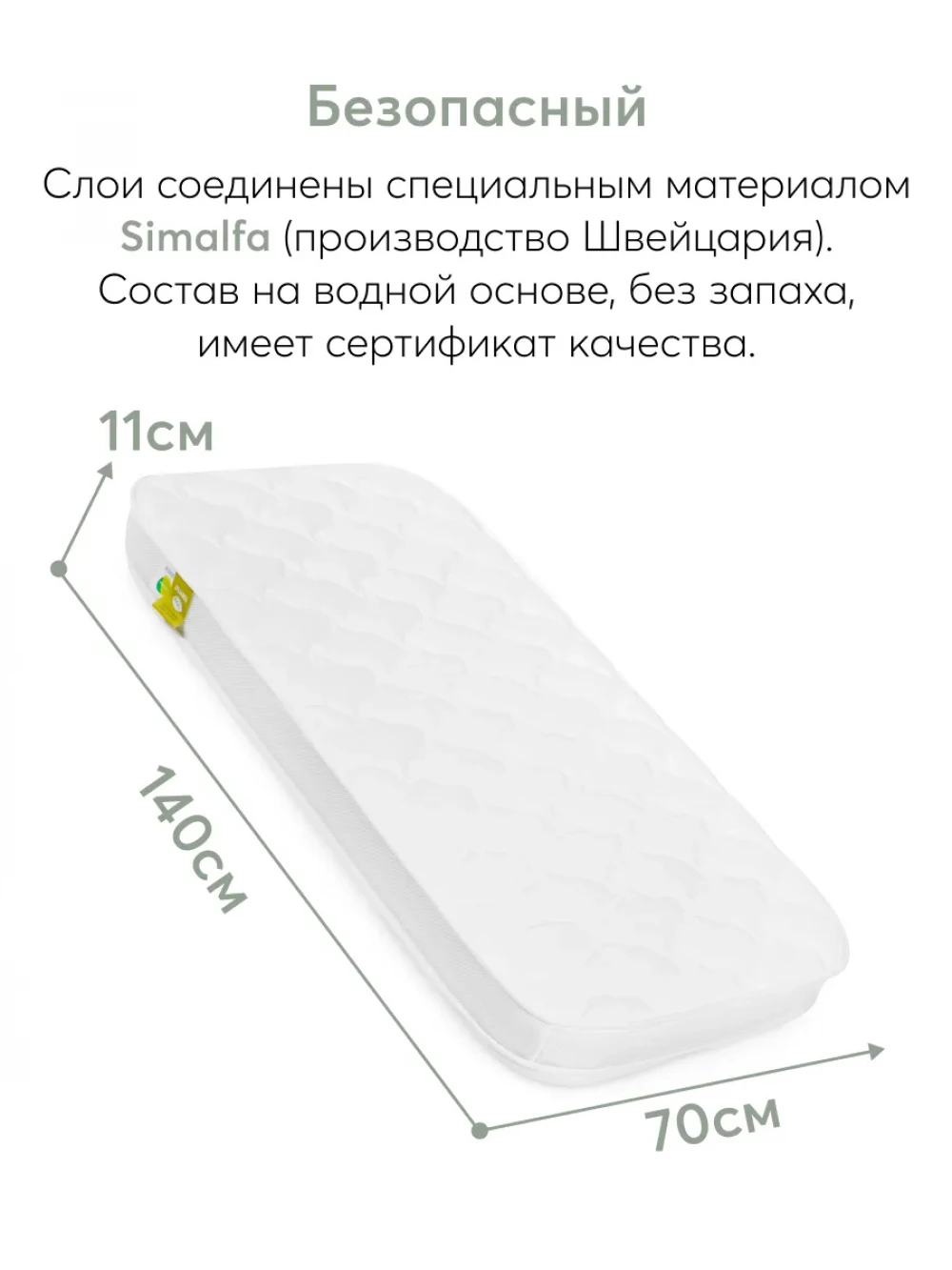 Матрас для кроватки 140*70 11 см кокос прямоугольный закругленный Happy Baby Mommy Lux, Лель БИ, Оливия
