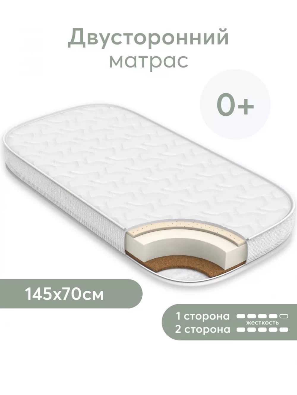 Матрас для кроватки 145*70 11 см кокос прямоугольный закругленный Happy Baby Mommy Love