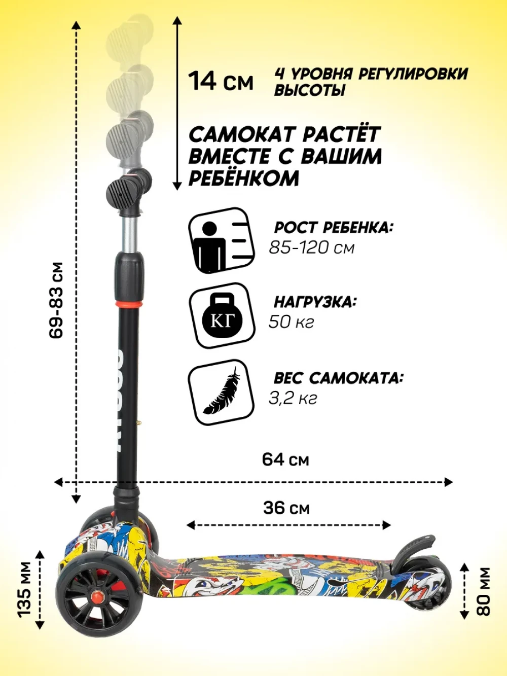 складная конструкция; противоскользящее покрытие деки; широкие колеса