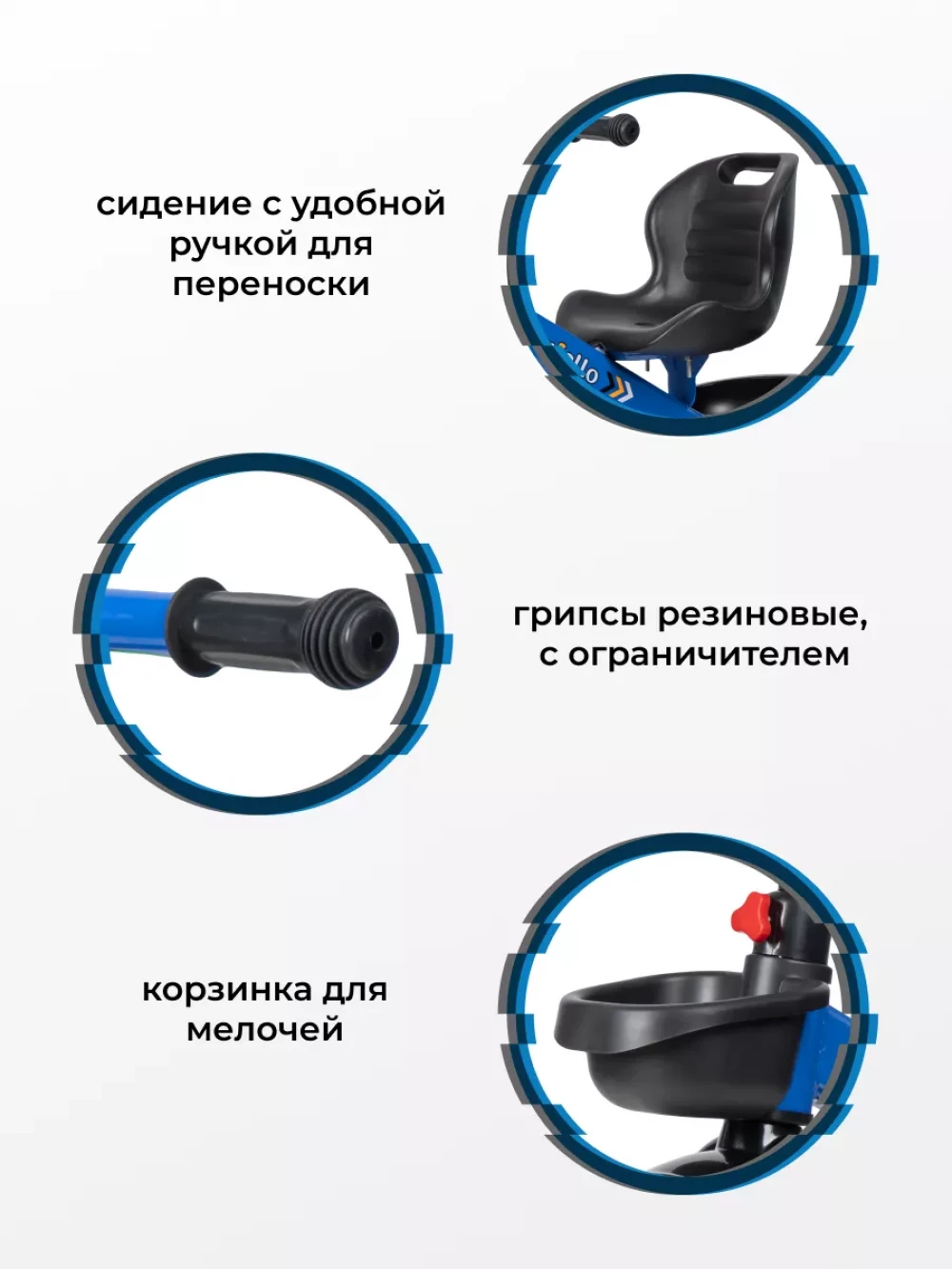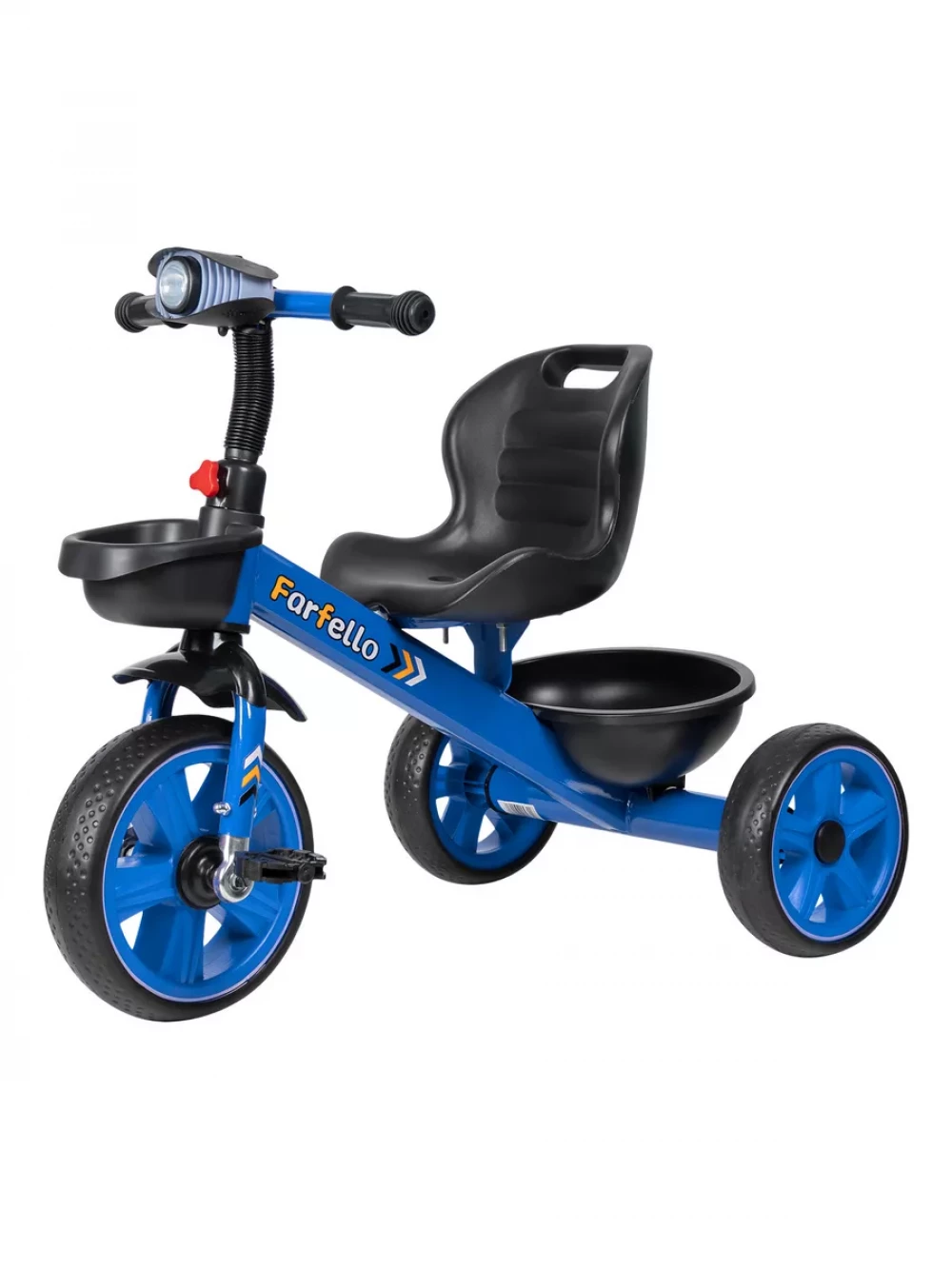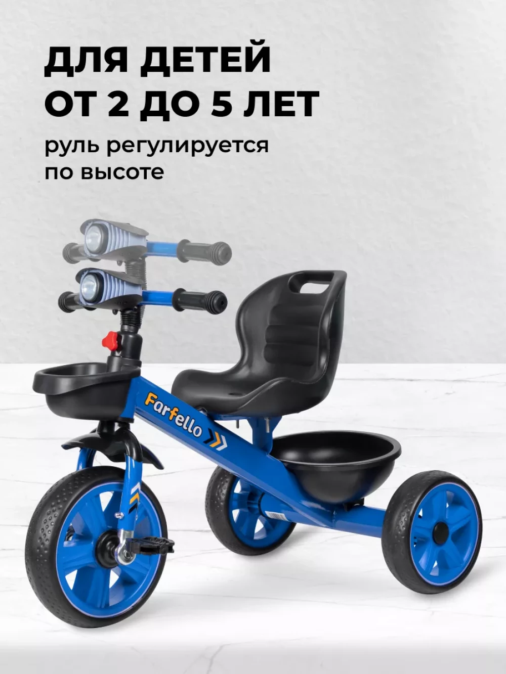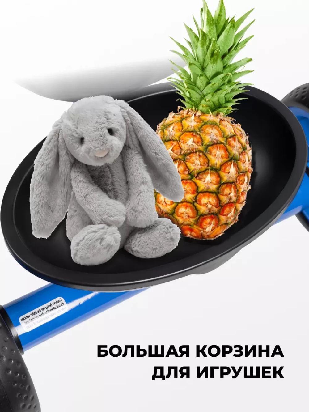 корзина для мелочей и корзина для игрушек; фонарь с музыкальной панелью; инструкция; рама, руль, колеса, сидение