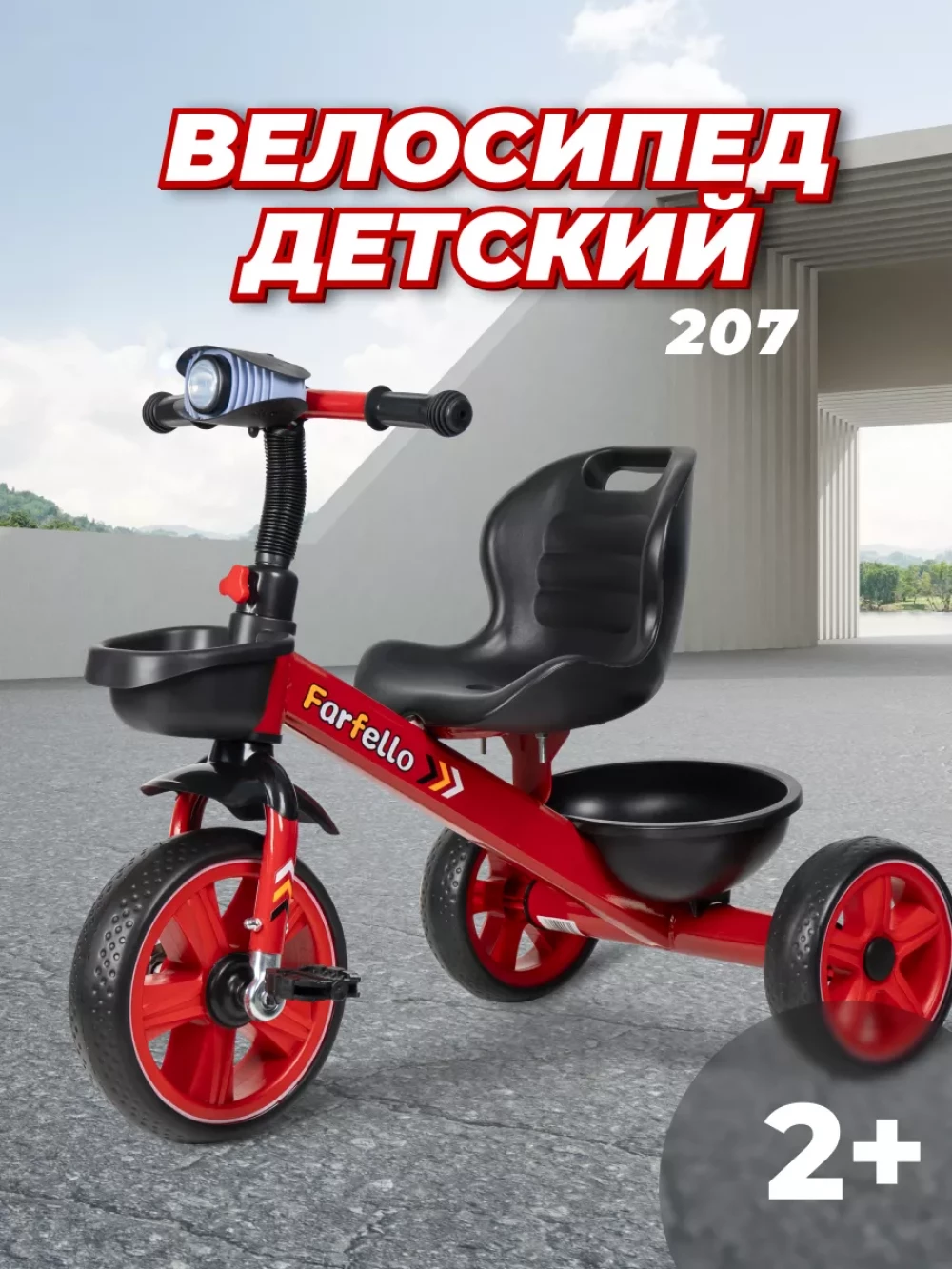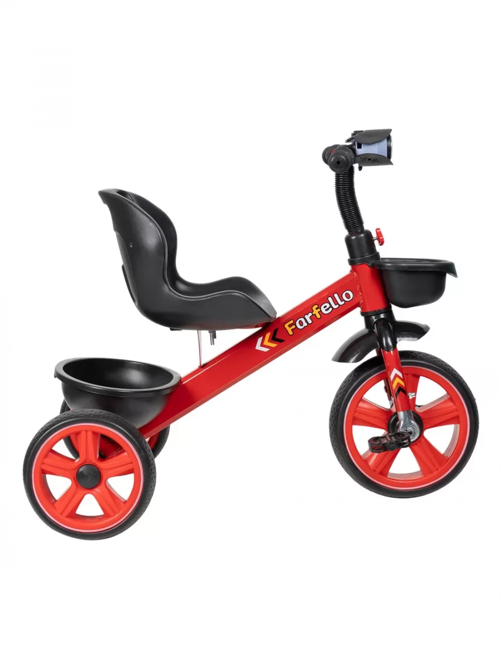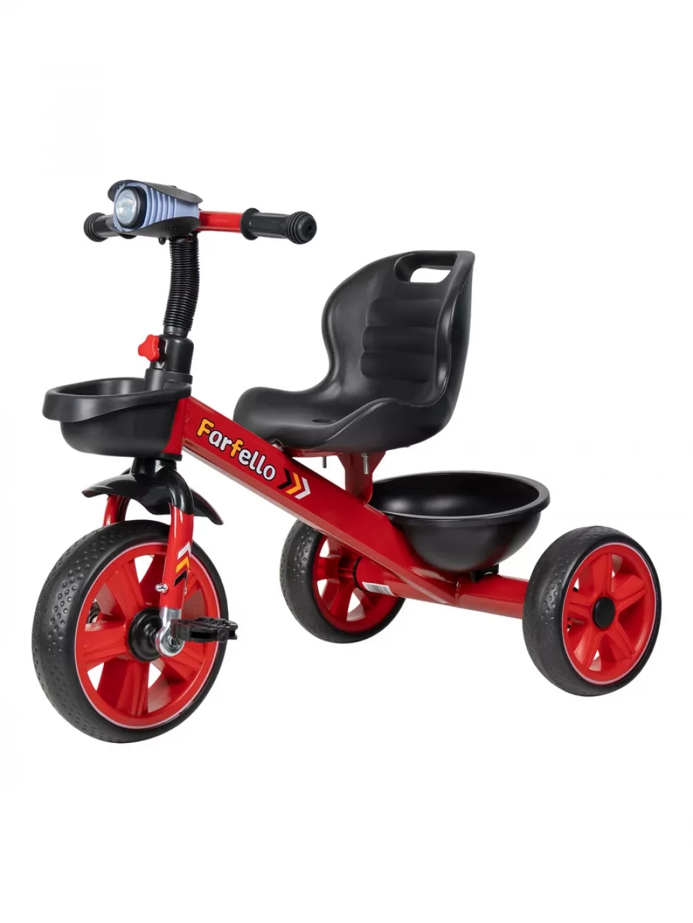 корзина для мелочей и корзина для игрушек; фонарь с музыкальной панелью; инструкция; рама, руль, колеса, сидение