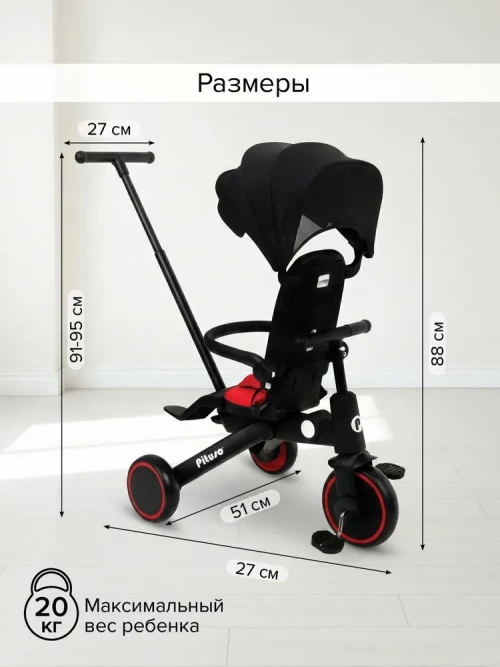Козырек от солнца, Корзина для вещей и покупок, Мягкое седло, Ремни безопасности, Родительская ручка, Складной, Стояночный тормоз