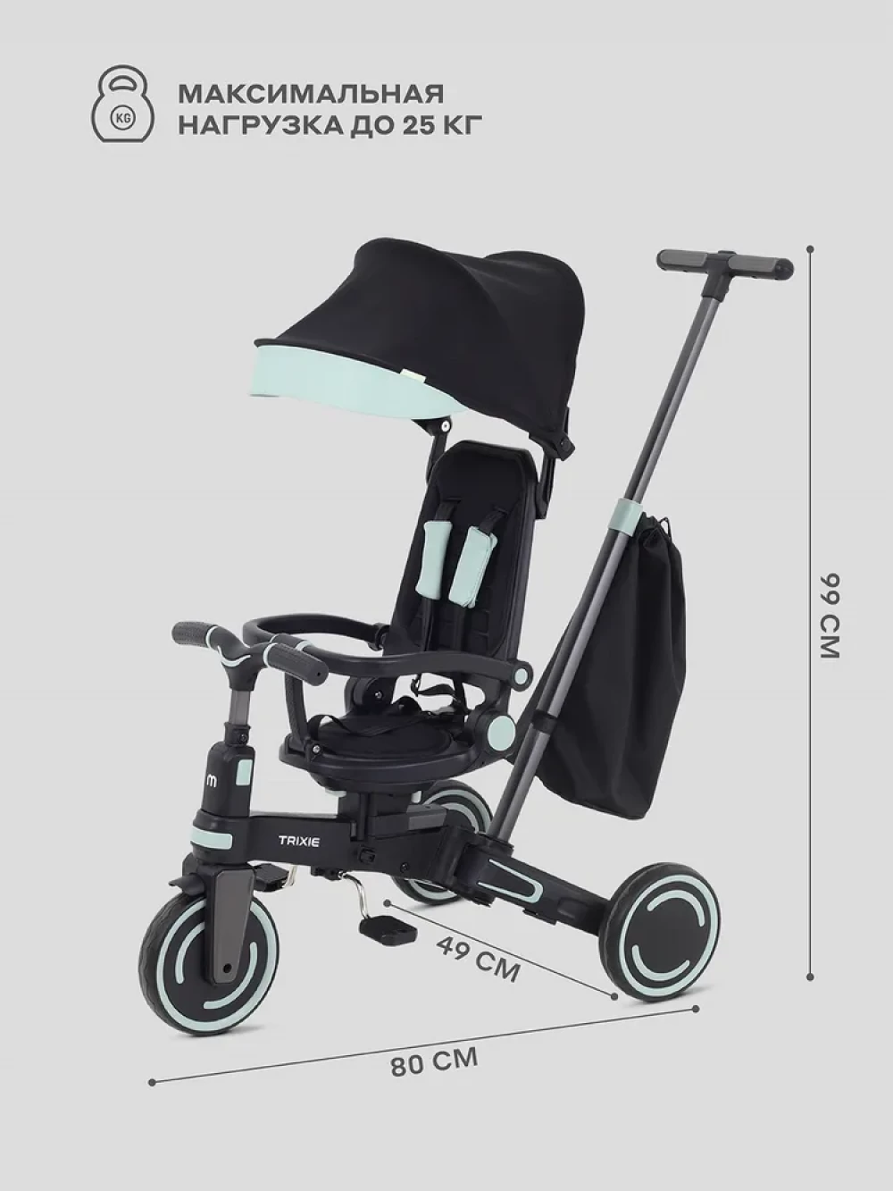 Козырек от солнца, Подножка, Ремни безопасности, Родительская ручка, Складной, Сумка