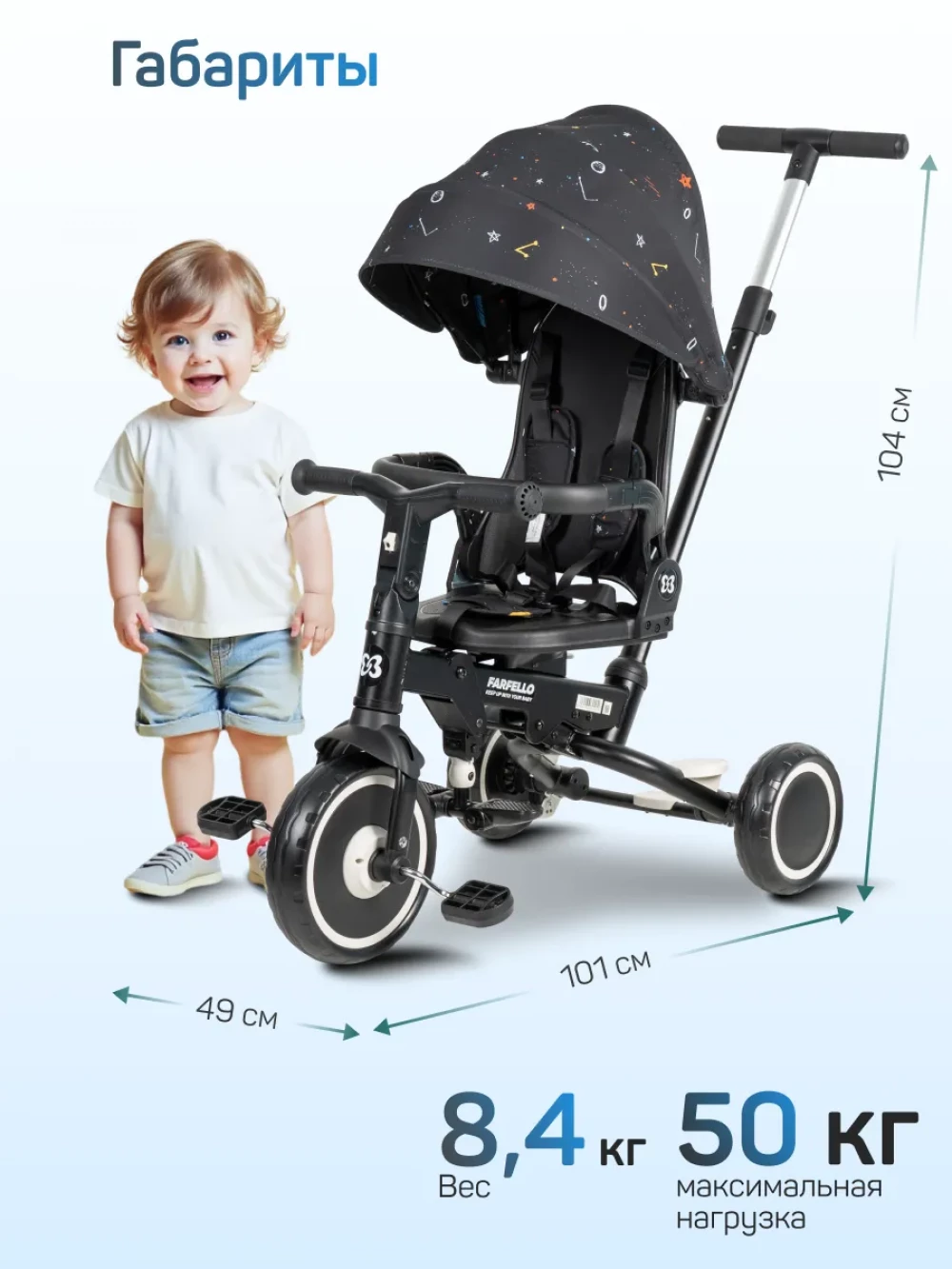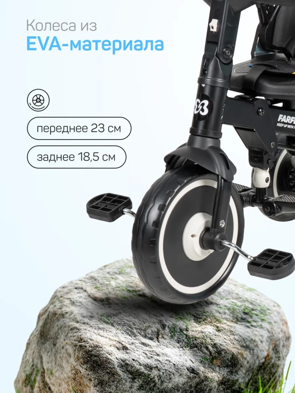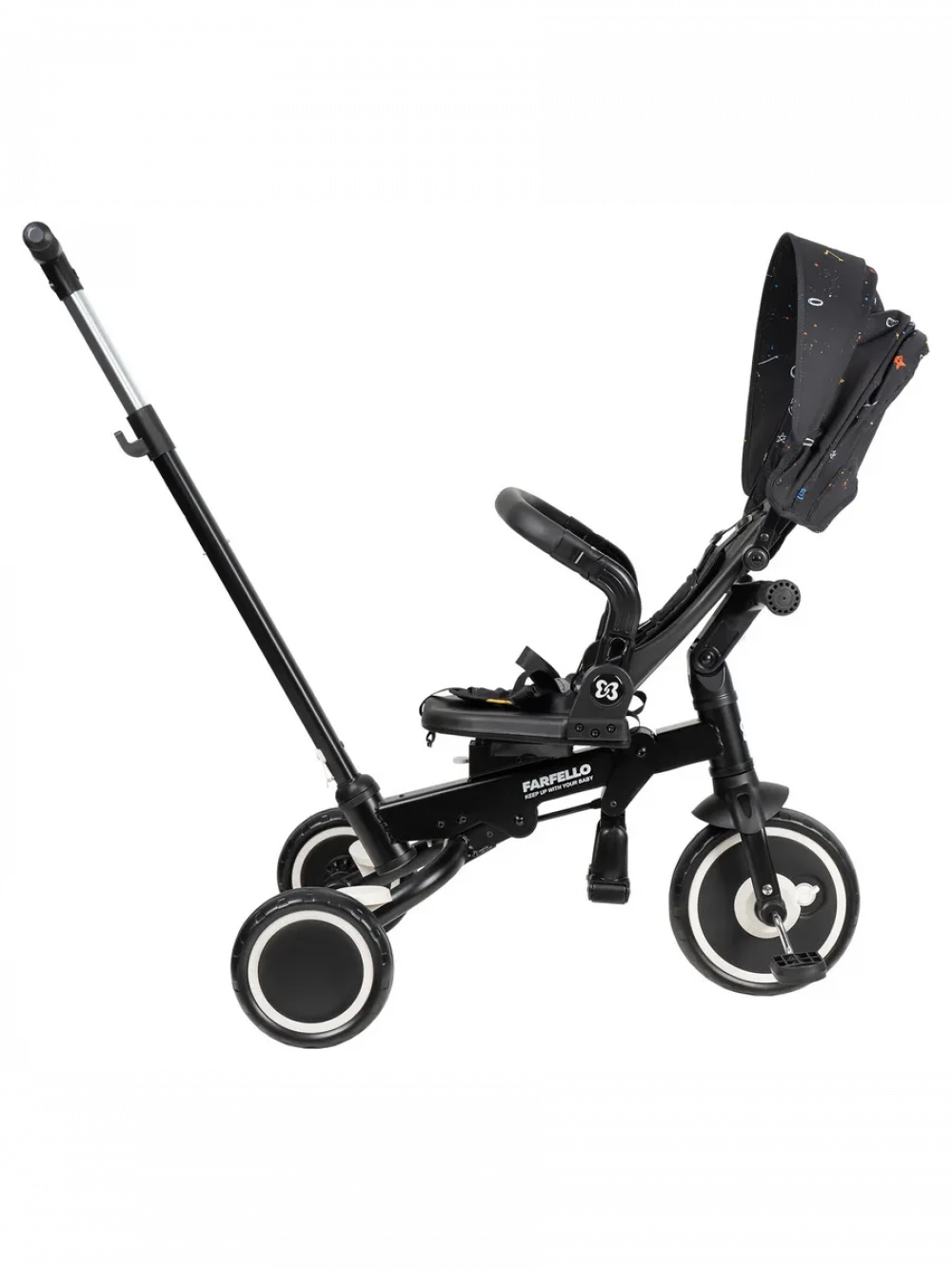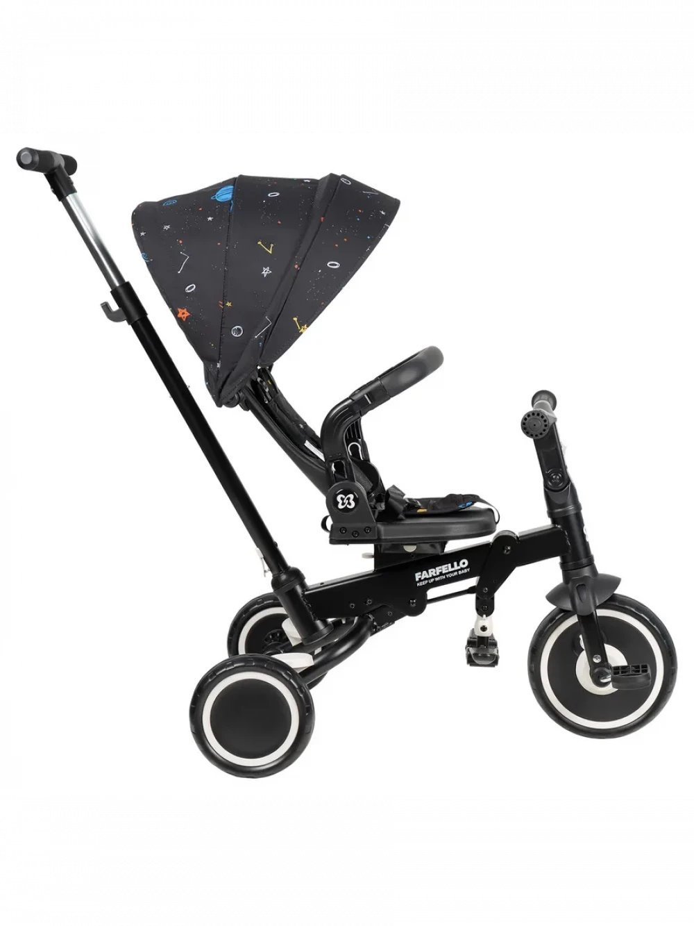 велосипед; родительская ручка; капор; бампер; подножка; пятиточечные ремни с мягкими плечевыми накладками; инструкция